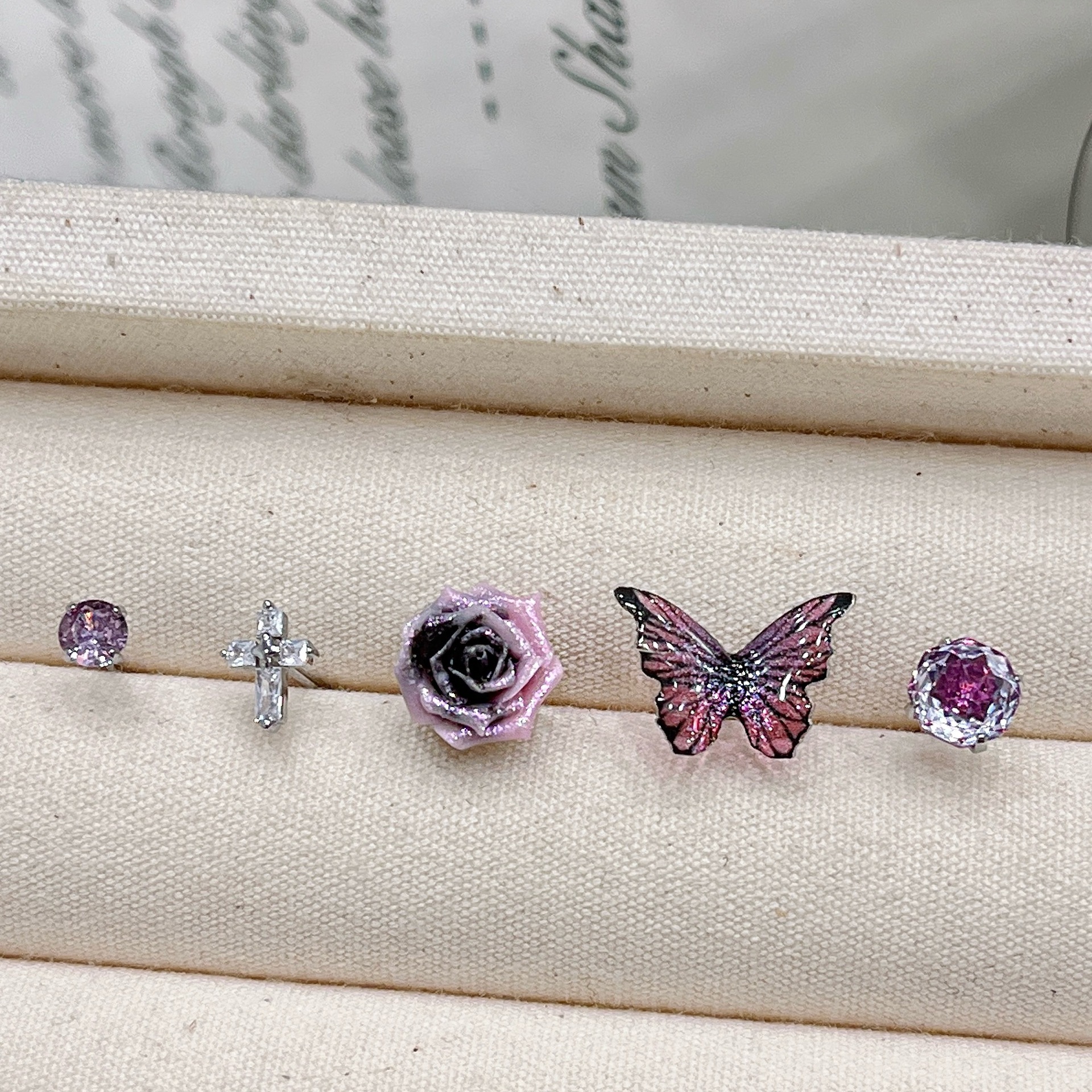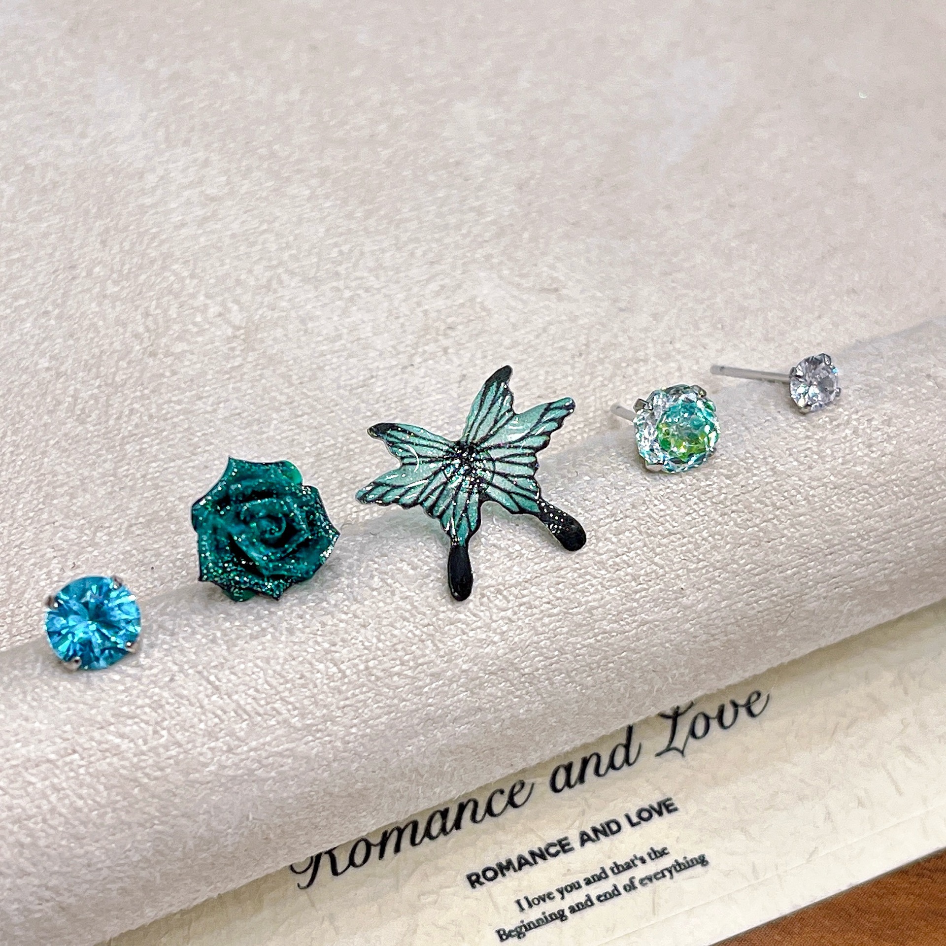 新作ローズカットジルコニアミニ不規則スタッドピアス女性向けファッションニッチ軽奢デザインイヤリングバタフライピアス
