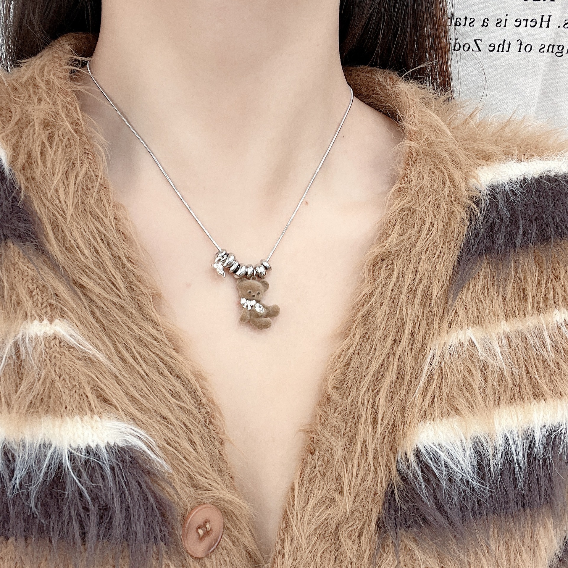 韓国ハローベア植毛リボン可愛いネックレス冬新作同デザインネックレスリング