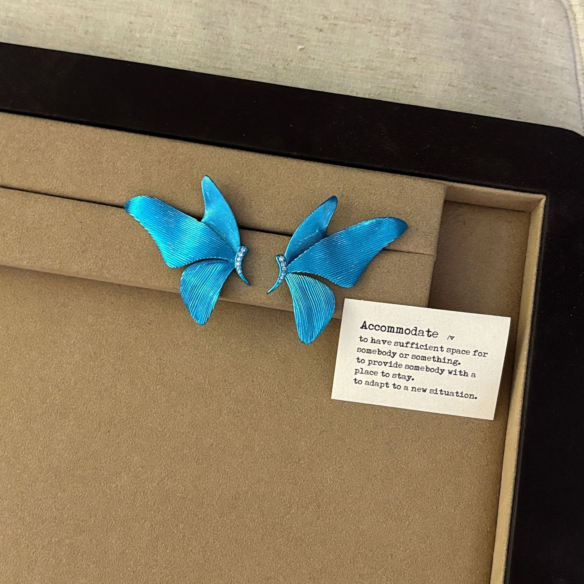 小红书 森系 夢幻的なグラデーションブルーアイスバタフライピアス レトロで優雅な雰囲気 高級感あるイヤリング 女性用
