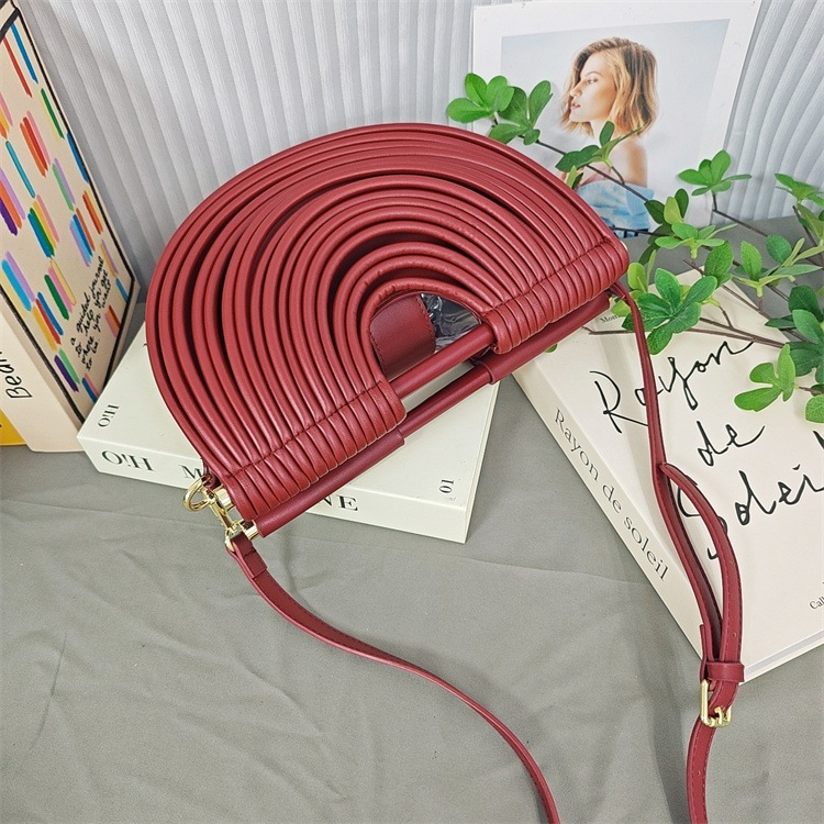 Twinkling star激安セール 半円形のユニークデザイン 編み込み素材バッグ サイズ33*10*18cm マルチウェイ対応で便利 豊富な12色展開 2026新作 個性的なファッションアクセントに