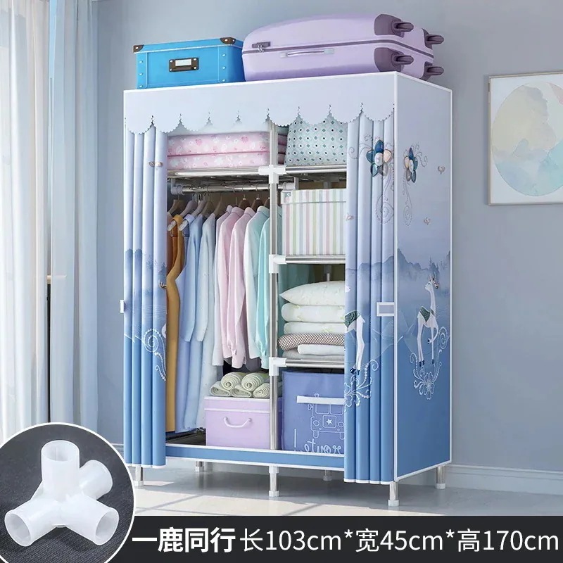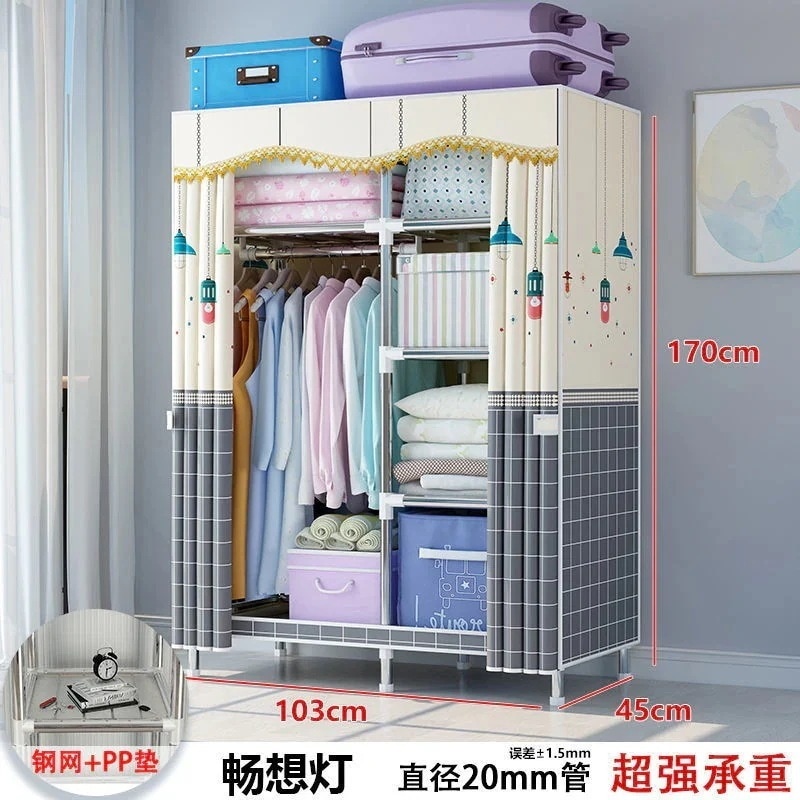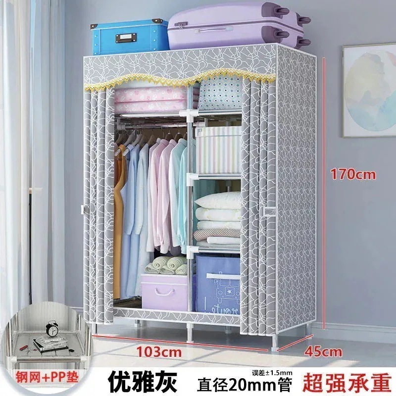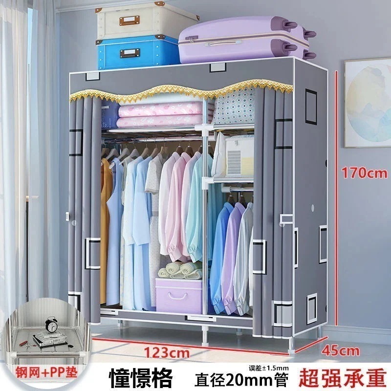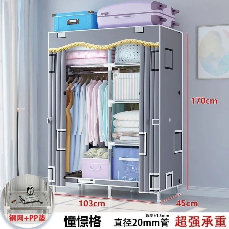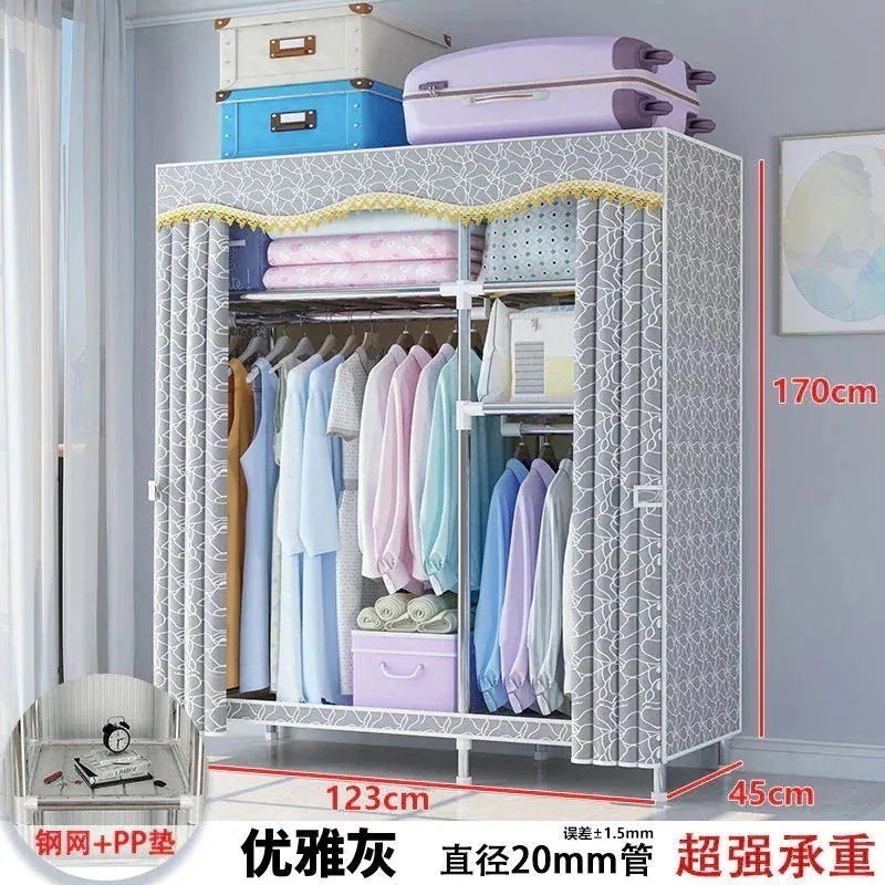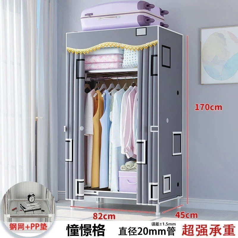【新作お得】簡易クローゼットレンタル用布たんす簡易組み立て家庭用寝室キャビネット太い補強ハンガー着地立式1656