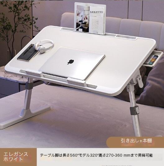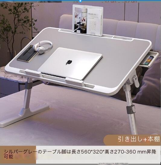 【新作お得】NEW多機能折りたたみテーブルベッドテーブルローテーブル読書灯+USBファン折り畳みテーブル机(ホワイト)