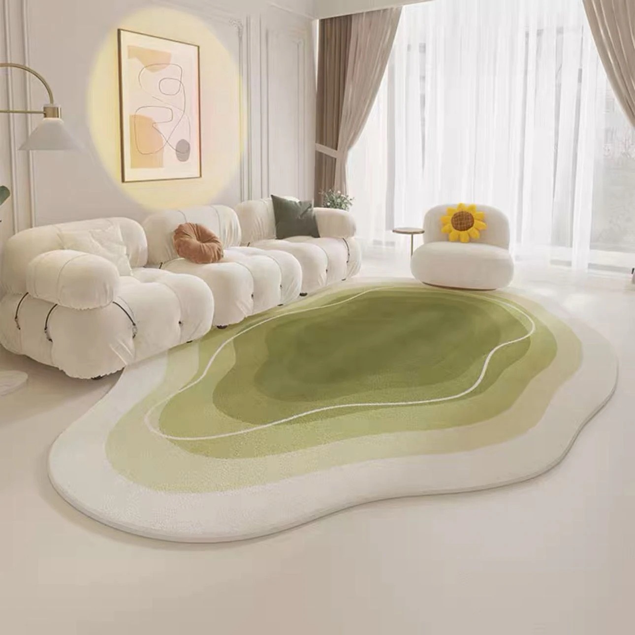 【新作お得】ハイエンド 不規則 クリーム風 ソファー ローテーブル 絨毯 オシャレ 家庭用 グリーン 雲 異形 カーペット