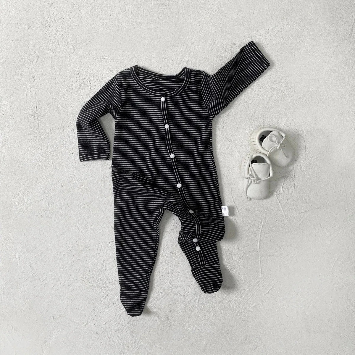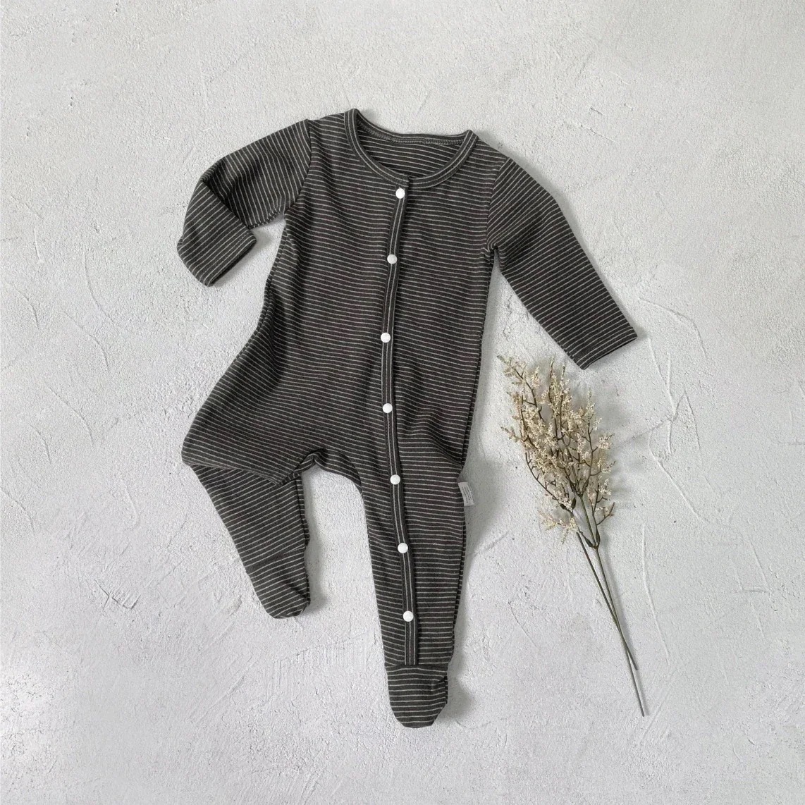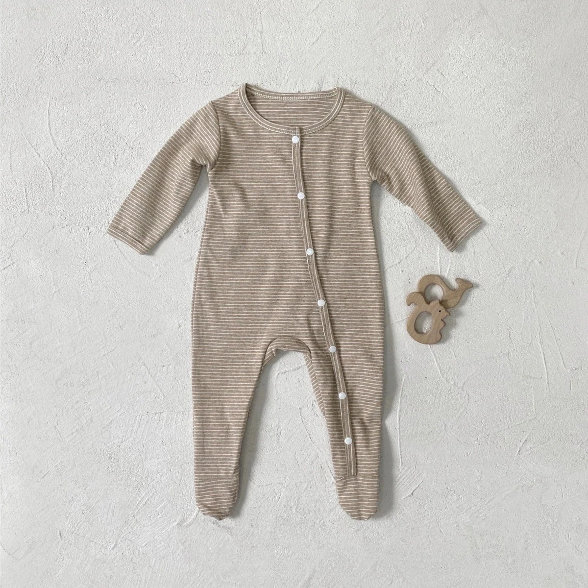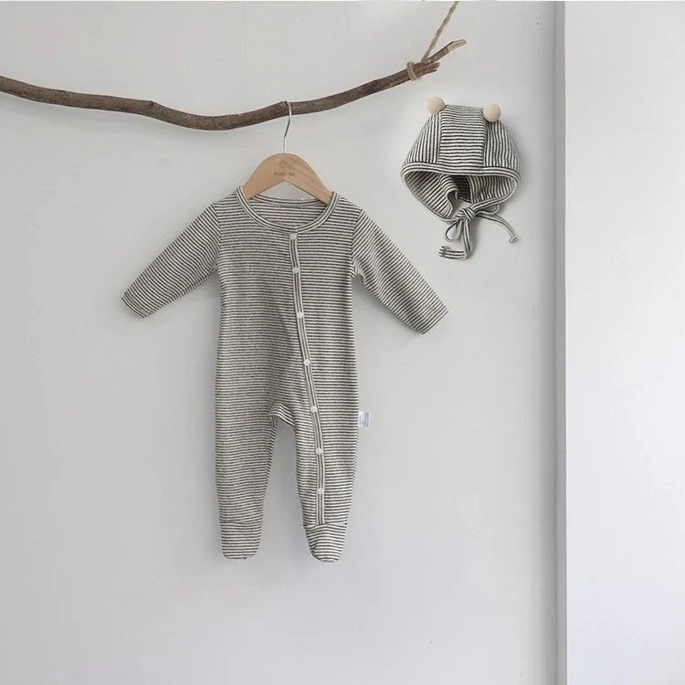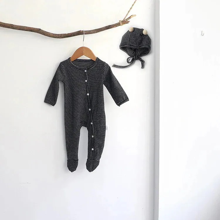 【新作お得】ベビー服 キッズ 秋服 子供服 ストライプ オープンチェスト ボディスーツ ボディスーツ ロング 足付き クローラー 韓国