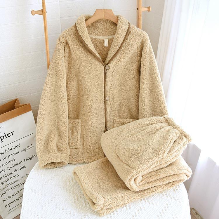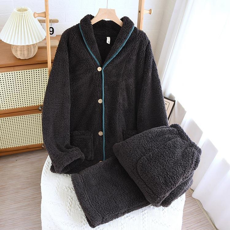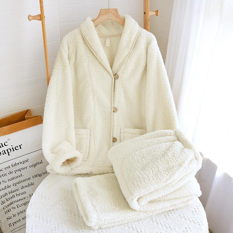 【人気爆売れ中】ルームウェア パジャマ レディース メンズ 冬 セットアップ 長袖 ポケット 上下セット 2点セット 前開き フランネル トップス パンツ もこもこ 冬物 ルームウェア パジャマ