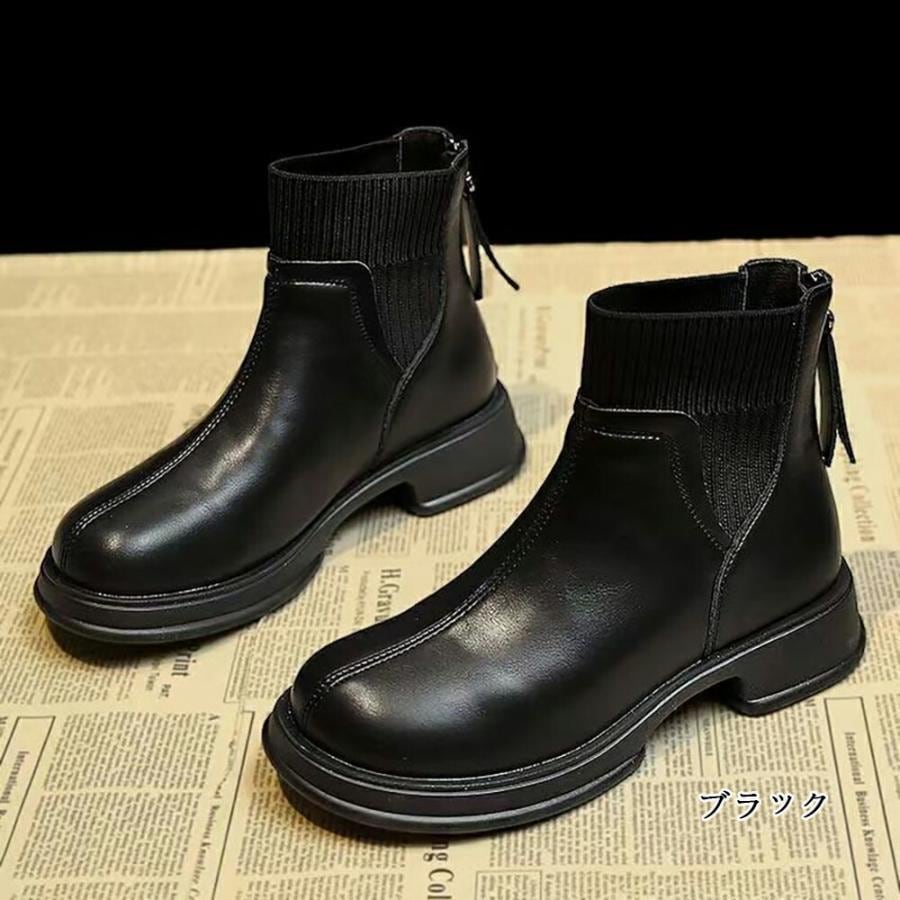 【人気爆売れ中】ショートブーツ レディース サイドゴア ブーツ ソックスブーツ 春秋冬 歩きやすい ローヒール ラウンドトゥ 22.5-25cm きいサイズ 黒 ブラック ホワイトショートブーツ レデ