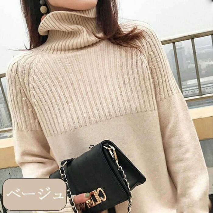 【人気爆売れ中】ニットセーター レディース春 秋 冬 セーター ニット 長袖 ハイネック 切り替え ブラウス プルオーバー インナー カットソー タートルネック 厚手ニットセーター レディース春