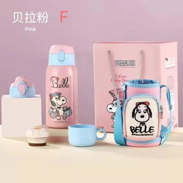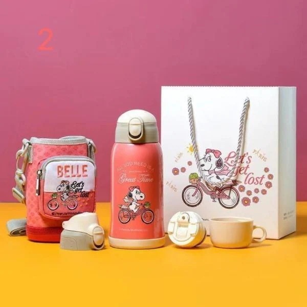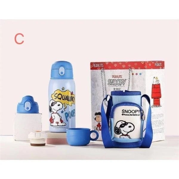 スヌーピー子供用水筒 600ml キッズボトル コップ&直飲み 子ども プレゼント 保冷 保温 ストロー付き 可愛い 通園 通学 カバー付き クリスマスプレゼント