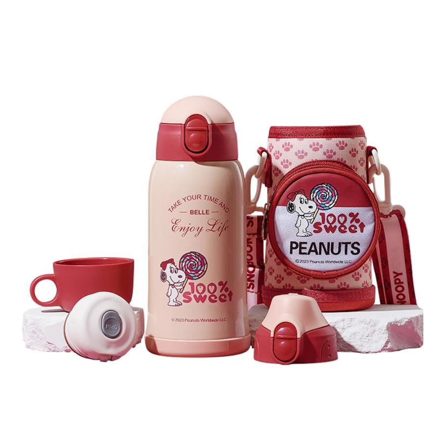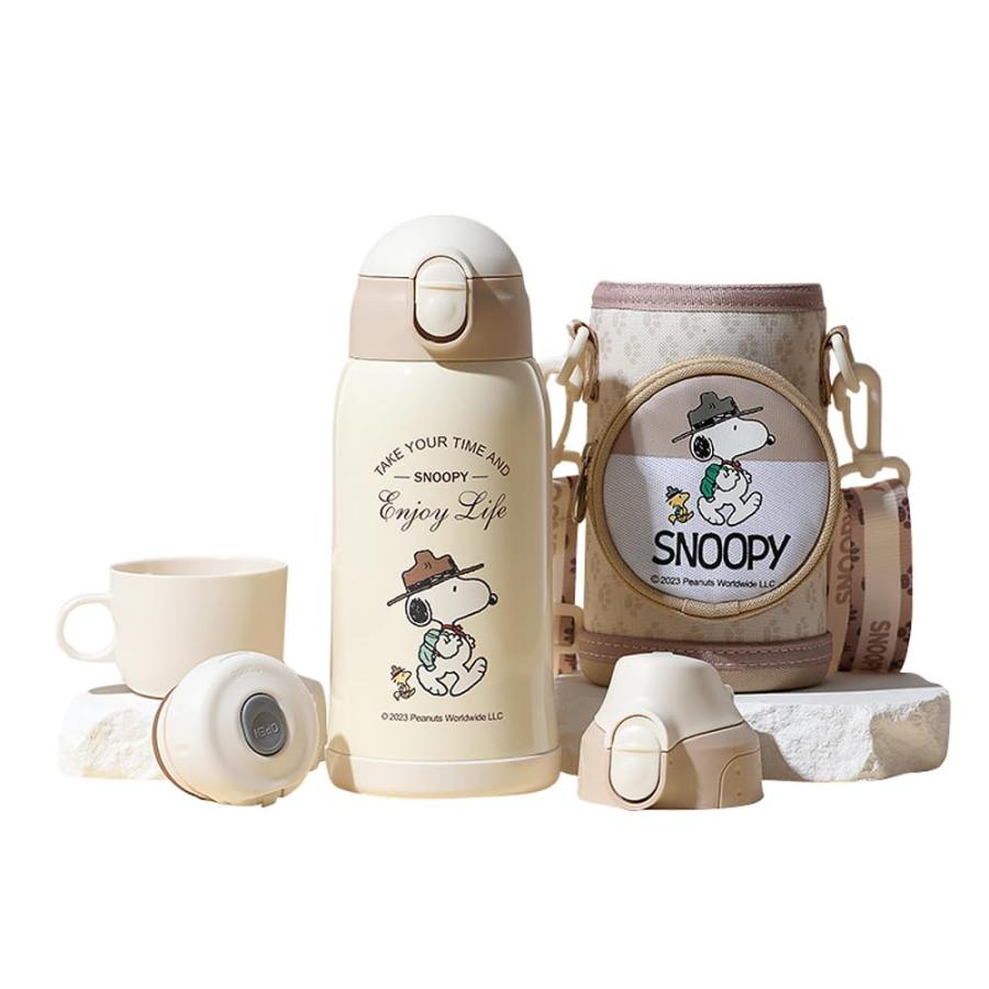 スヌーピーステンレスボトル 水筒 真空断熱 飲み口3種類 保温保冷 600ml 子供用 男女兼用 ワンタッチで開らく ステンレス 保温カップ 可愛い 直飲み