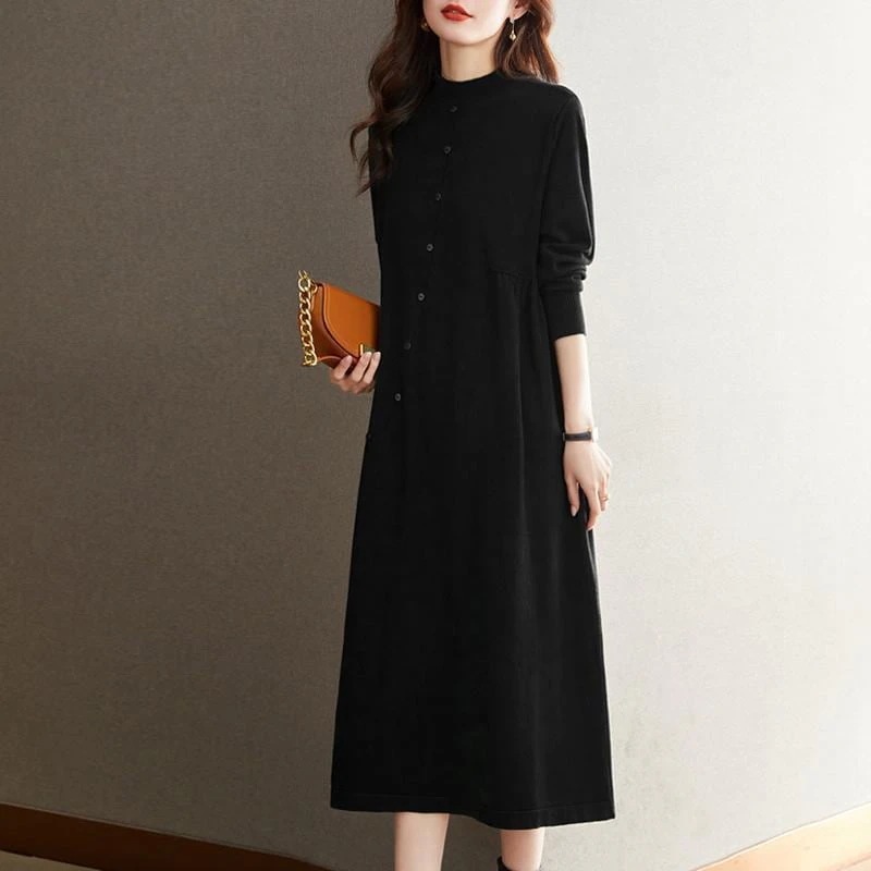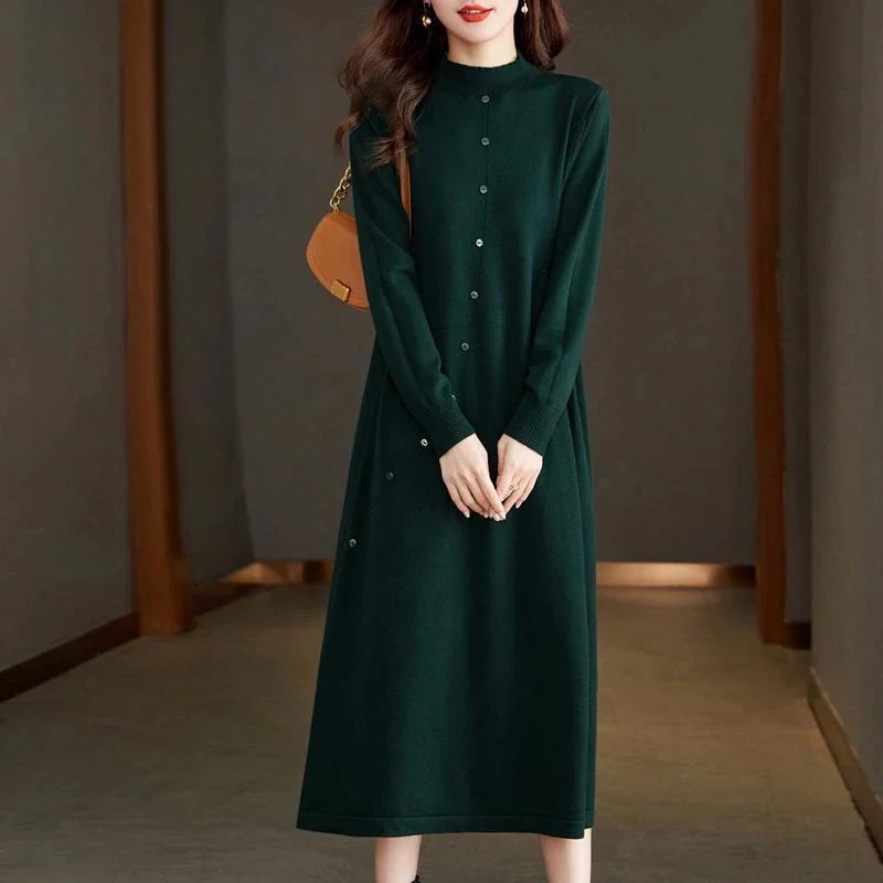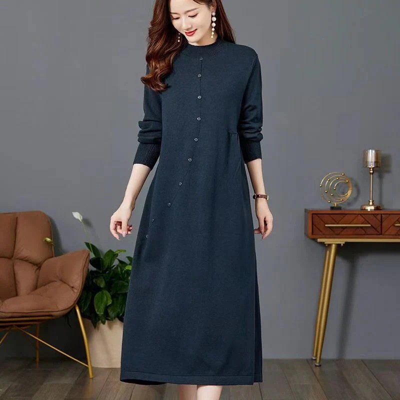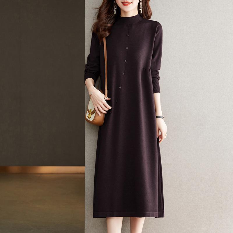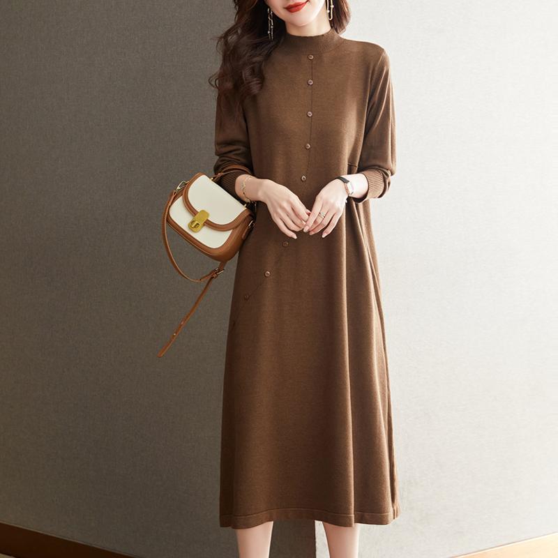 秋冬新作 ママ用ゆったりワンピース インナーになミディ丈ニットセーター 毛糸のワンピース ニットセーター 膝丈ロング丈・長袖