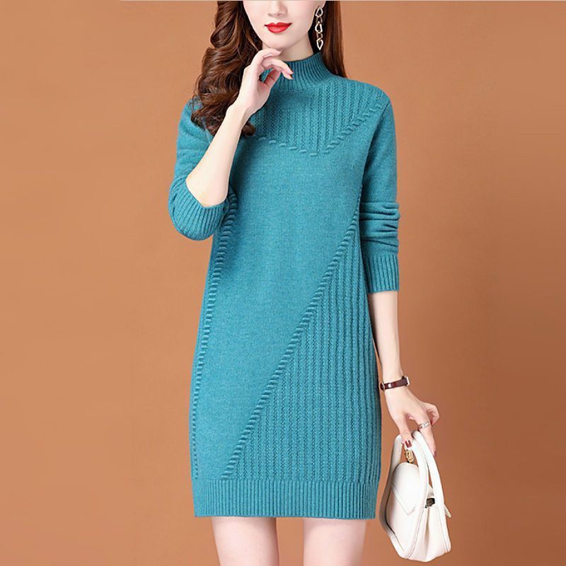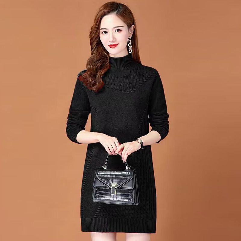 2026年秋冬新作 ハーフハイネック ハーフコート丈 セーター ワンピース スリムフィット 合わせやすい 細身効果 ニットワンピース レディース ロング丈・長袖