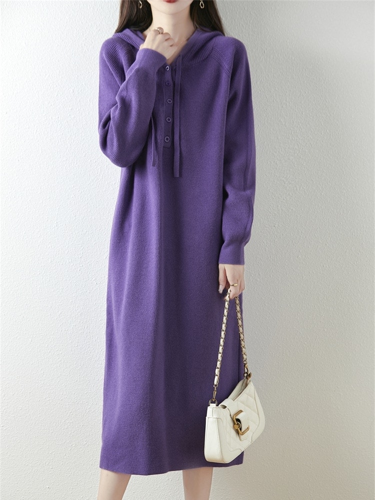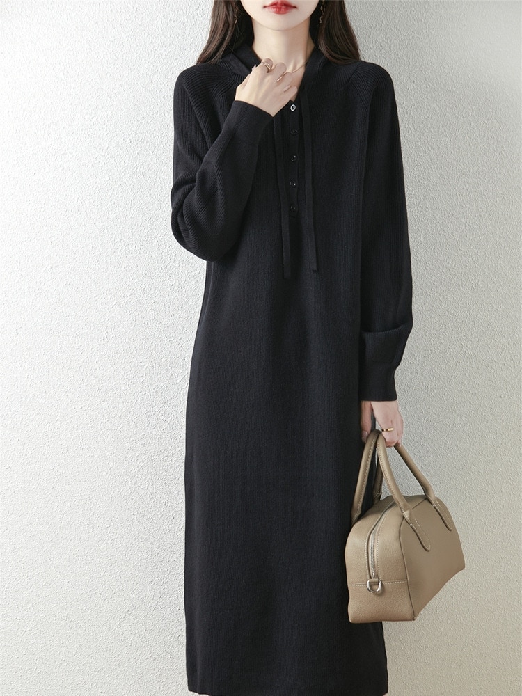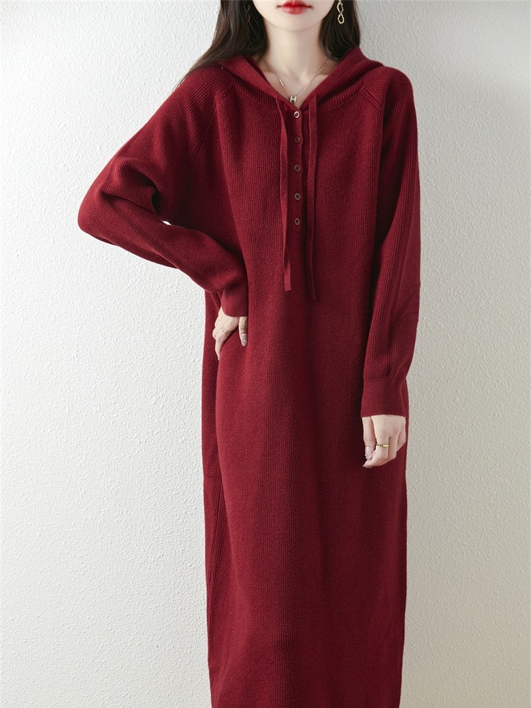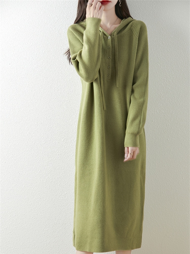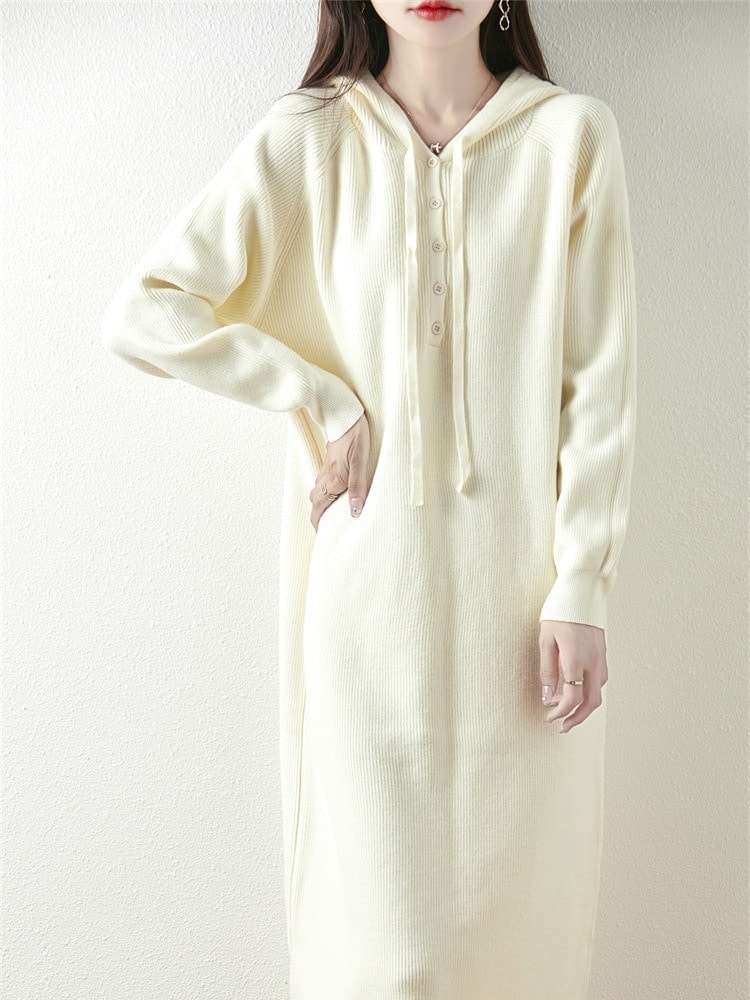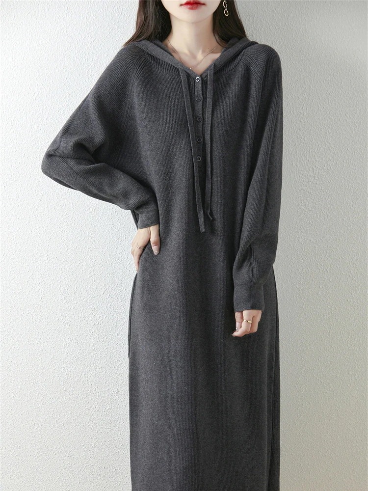 ニットワンピース秋冬新作超かわいいフード付きロング丈カーディガンワンピース 厚手・保温性・ゆったりロング丈カーディガンワンピース・長袖