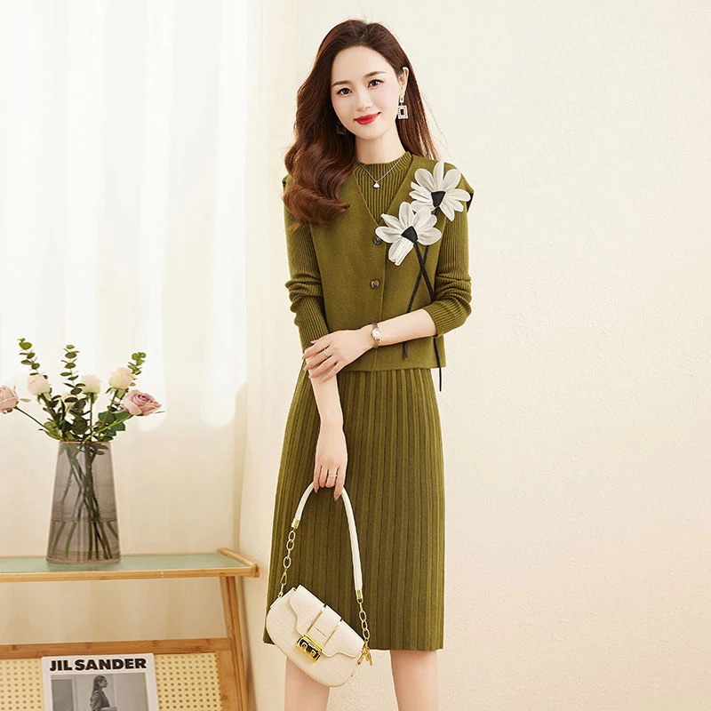 ニットワンピース レディース 春秋冬 高級感 着こなし 小柄な方におすすめ シルエットを美しく見せるセットアップワンピース ツーピース セット