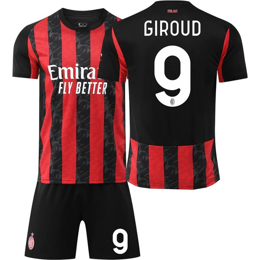 【新作お得】サッカーウェア2526ACミランメインユニフォーム赤9ジル19テオ10ラファエル・レアンサッカーウェア子供人セット人子供半袖