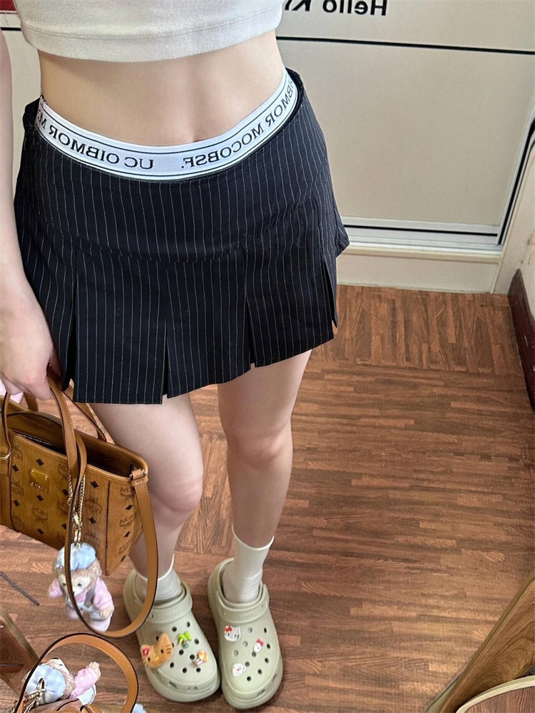 【急速出荷】アメリカンレトロストライププリーツローウエストスーツスカート女性夏の修身痩せ見え甘辛a字ヒップバッグスカート