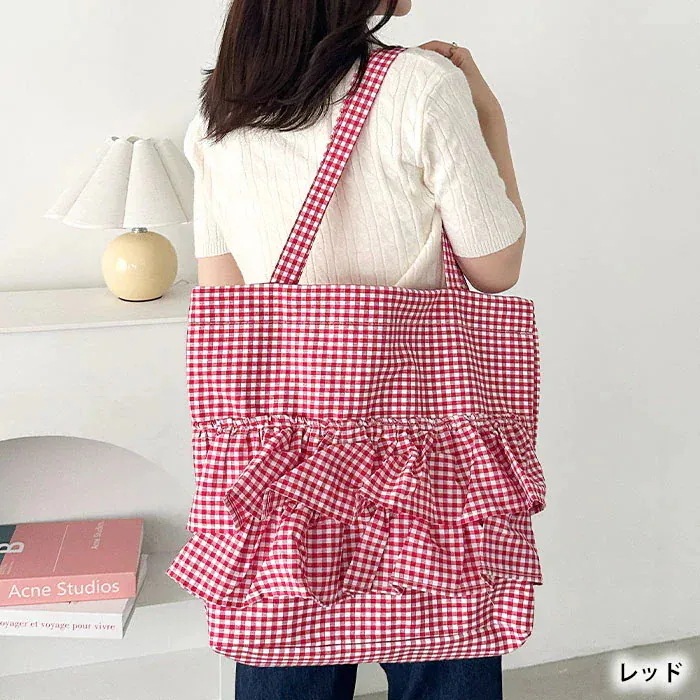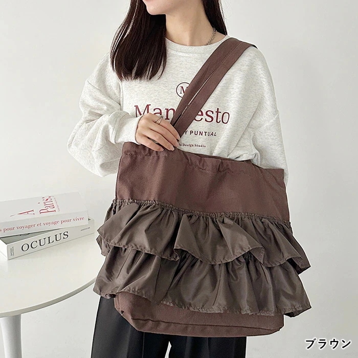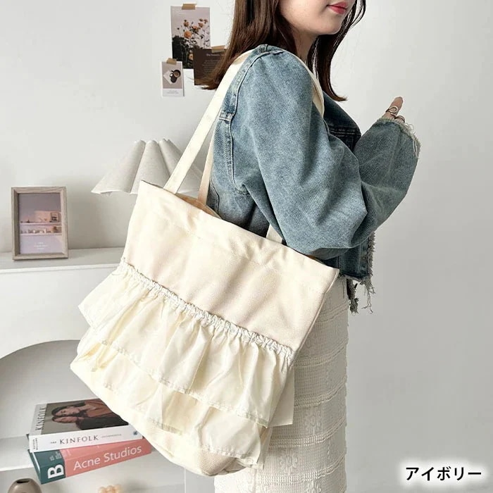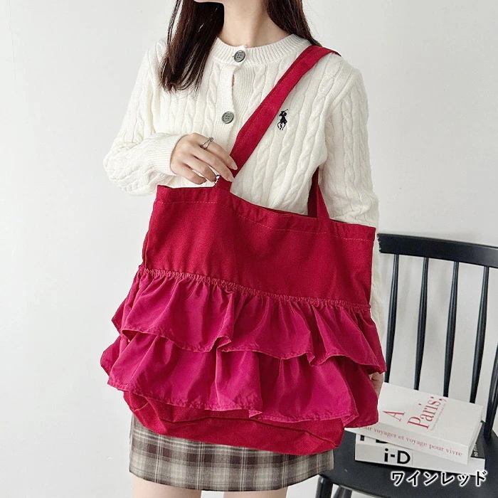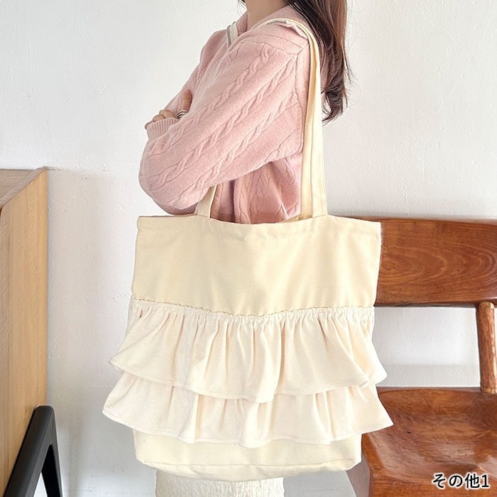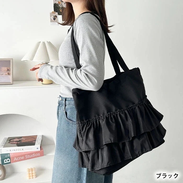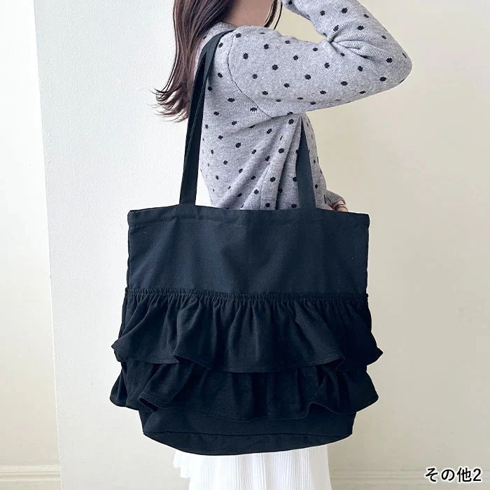 【2点購入ごと500円OFF】【国内発送】【A4サイズ対応】2way フリル トートバッグ【送料無料】