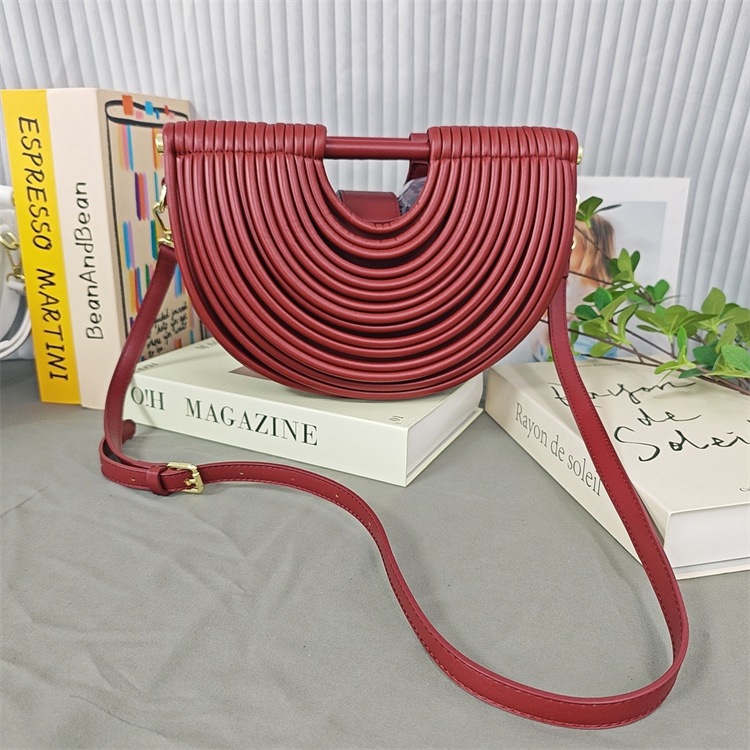 INSスタイル コンパクトで使いやすい半円形編み込みトート 33*10*18cm 2026新作 ショルダー・手持ちにも対応 12色豊富選択 ナチュラルな素材感でお洒落を演出