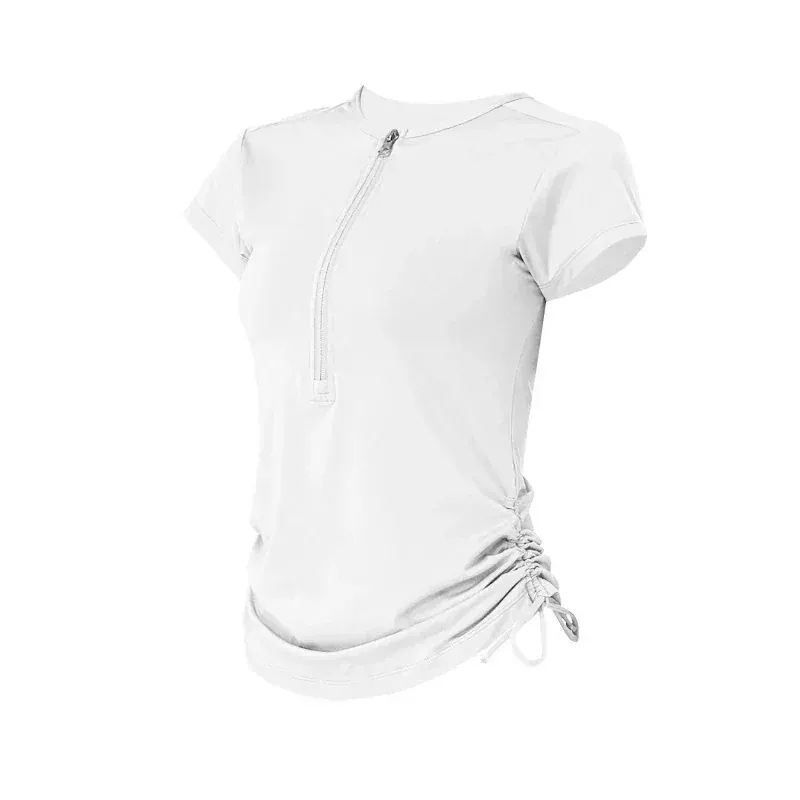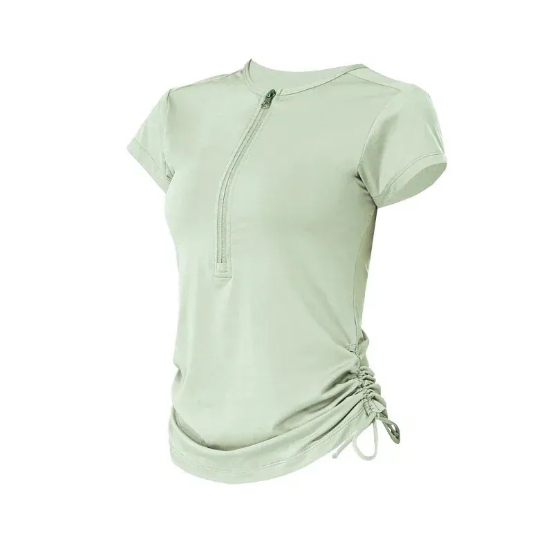 おしゃれヨガウェア トップス 速乾 ファスナー引き紐ヨガ 半袖 運動 Tシャツ 女性フィットネス上着 通気 速乾ランニングおしゃれヨガウェア 半袖 tシャツ ジャージ