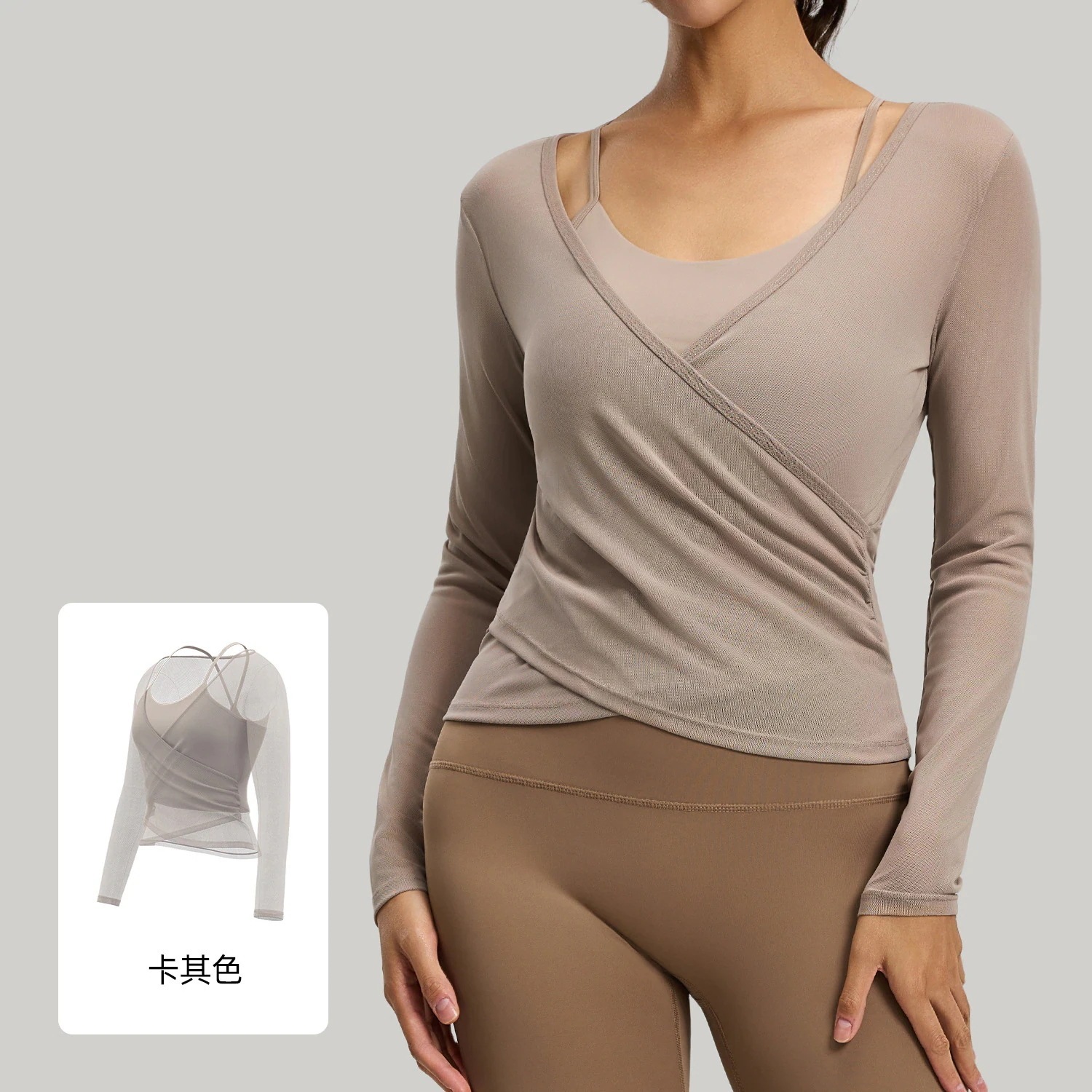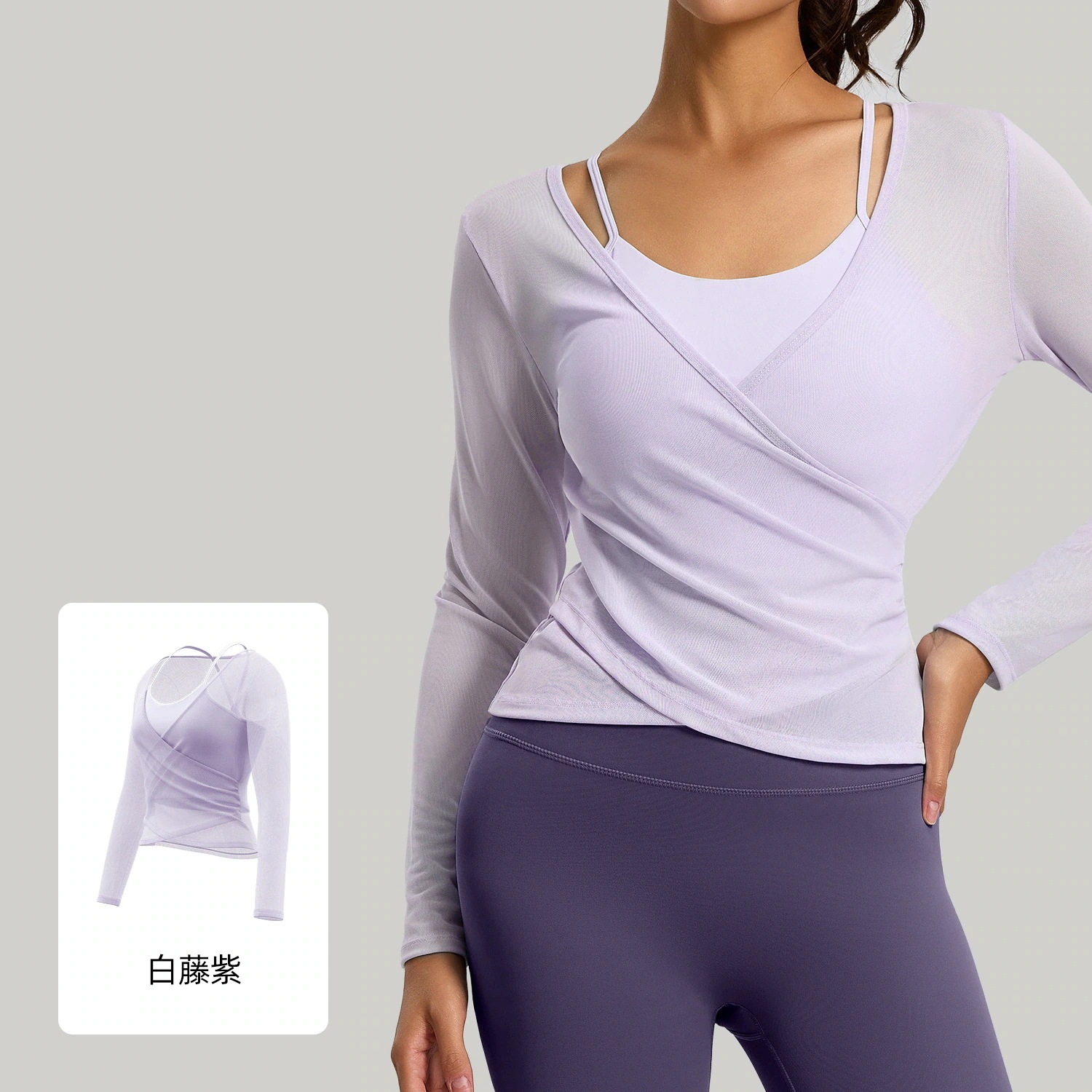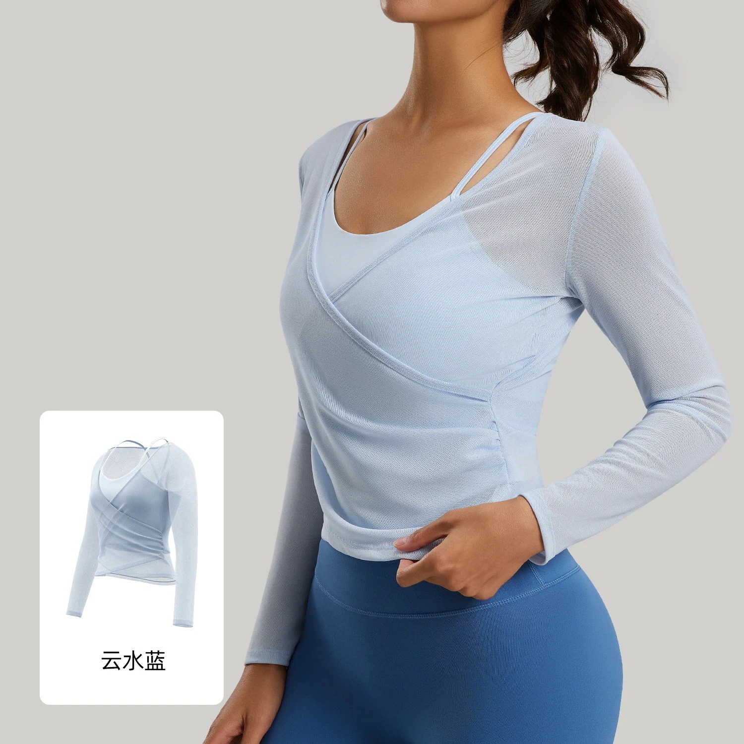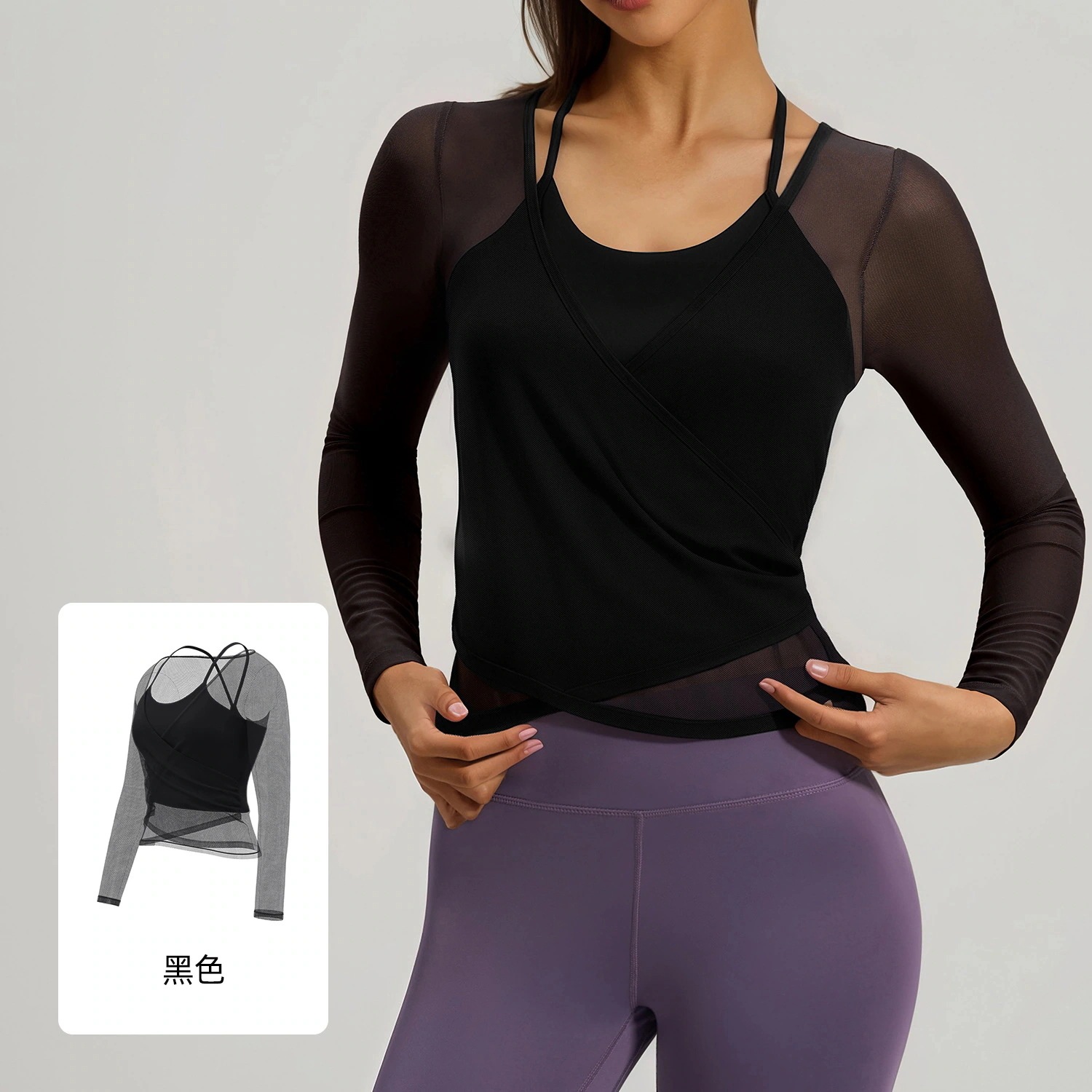 【急速出荷】2026新作美背メッシュ通気性ヨガウェア 取り外し可能ツーピース スポーツカバーアップ長袖トップス レディース