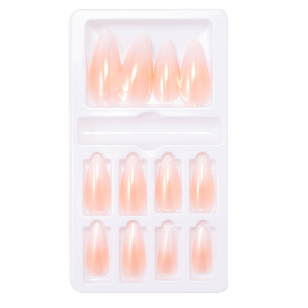 デコネイルネイルチップ 可愛い シャイニー ピンク 桜貝色 ロング レギュラーポイント ネイルアート デコネイル 両面テープ