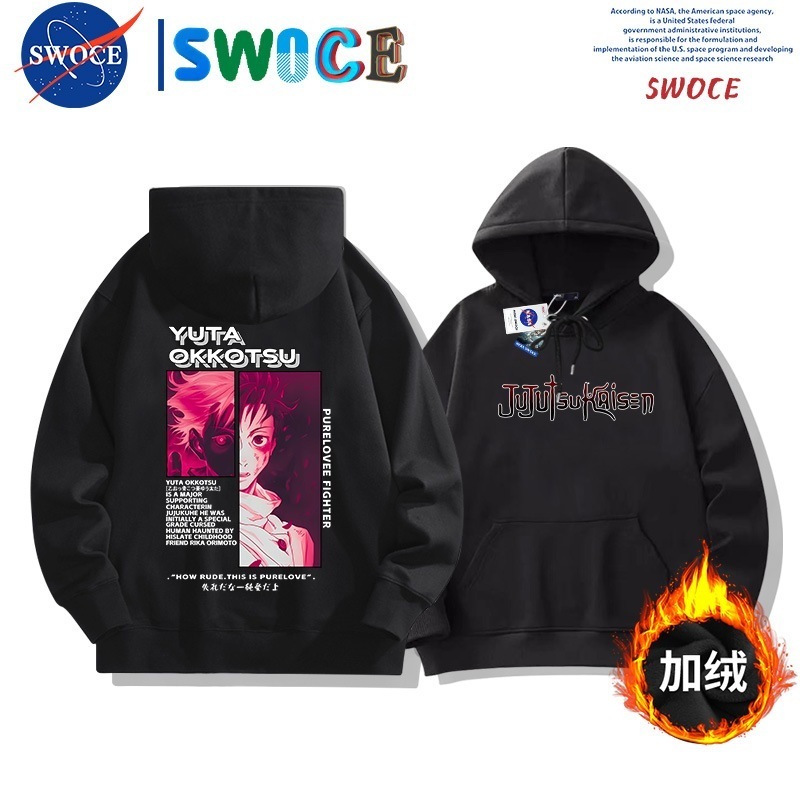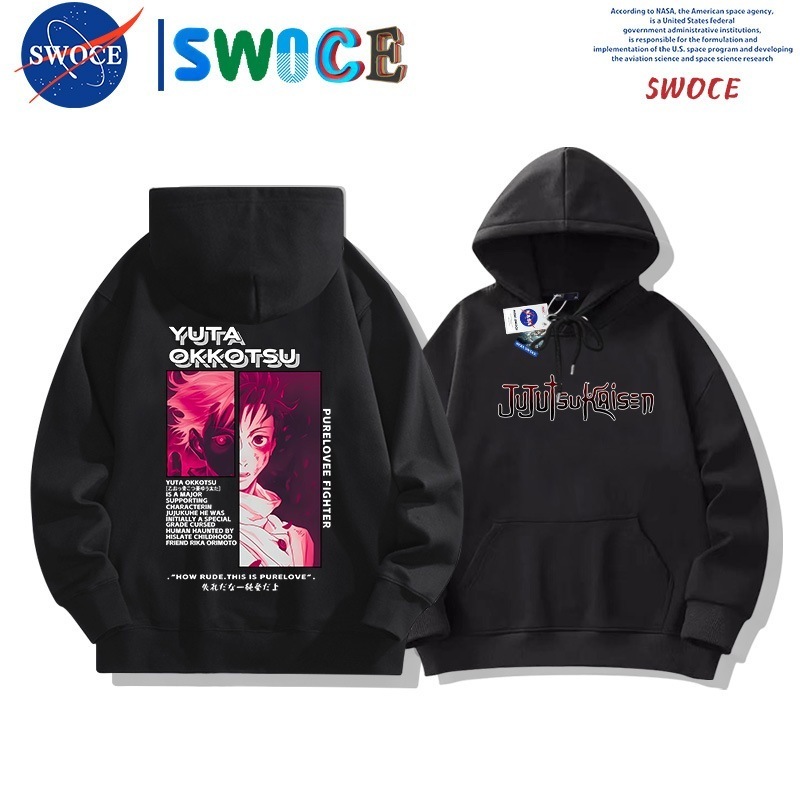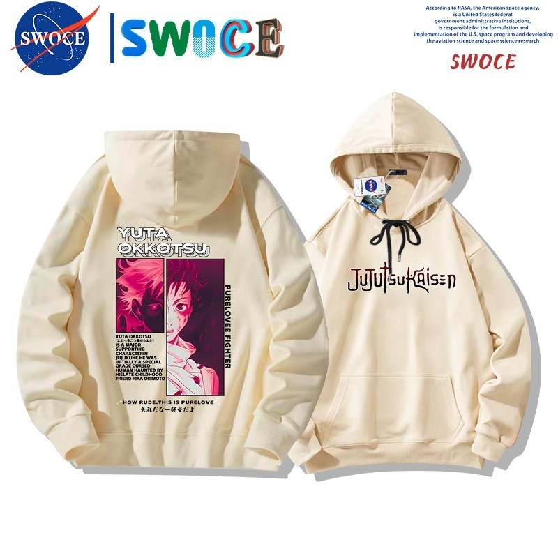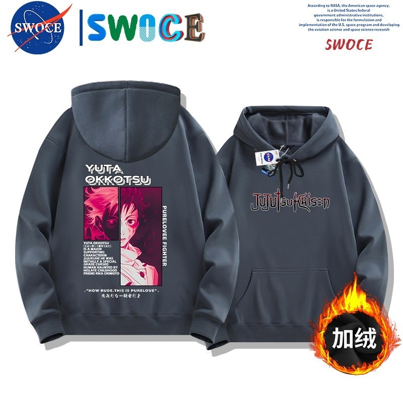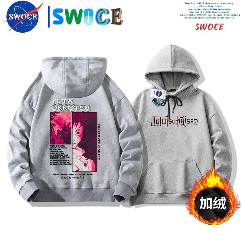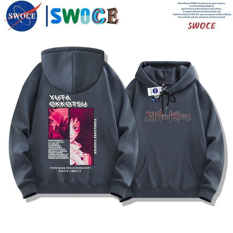 呪術の回戦は帽子の衛衣の男女の潮のブランドのアニメ・漫画の青少年の学生のゆったりとしている肩に落ちて羽毛の上着のanime hoodieをプラスします