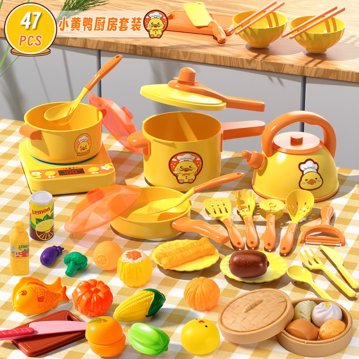 子供のアヒルの台所のおもちゃセットの赤ちゃんはご飯を炊いて楽しいシミュレーションの食器の男の子の女の子のままごとの料理器具を切ります