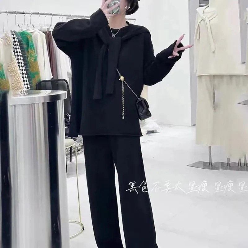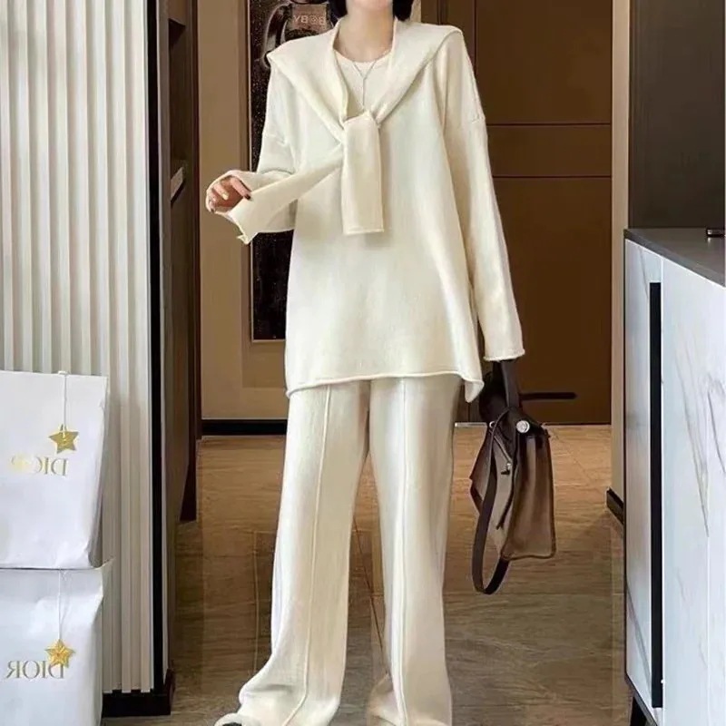 セットアップ 気品新作ニットセーターワイドパンツ3点セット秋冬エレガントスーツ