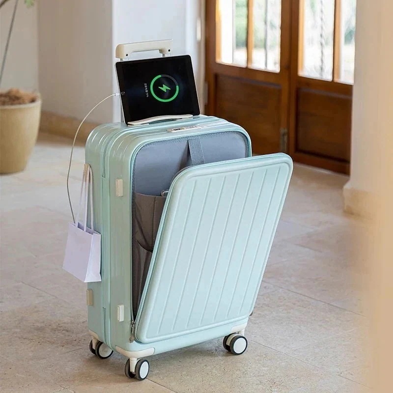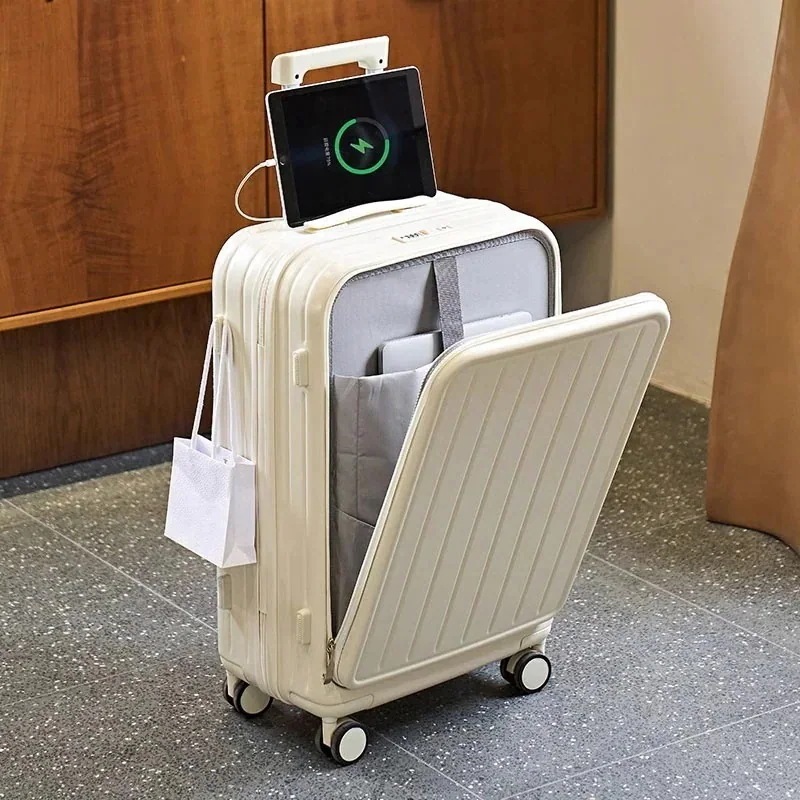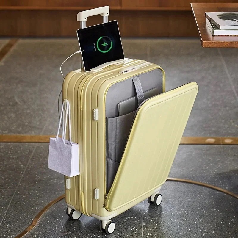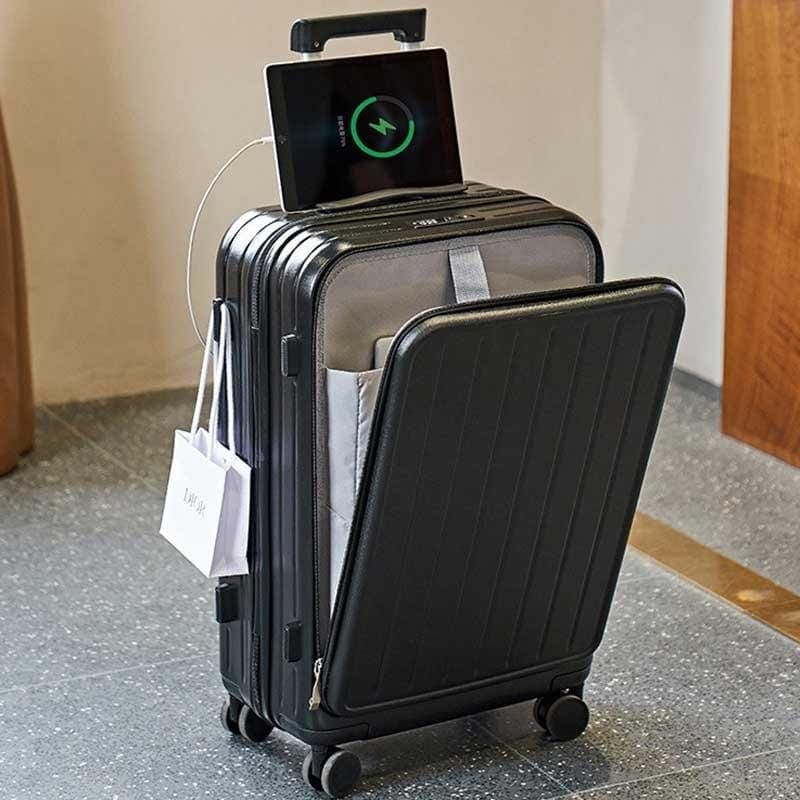 スーツケース キャリーケース 機内持ち込み 多機能スーツケース フロントオープン 大容量 超軽量 前開き USBポート付き カップホルダー付き 43L/69L