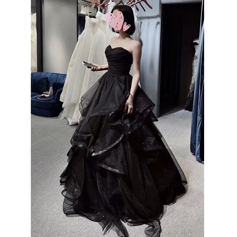 【人気新作】【新デザイン登場】ワンピース ドレス ブラックのイブニングドレス成人式/誕生日パーティー司会者/学生/芸術試験用普段着としても着用可能なイブニングドレス