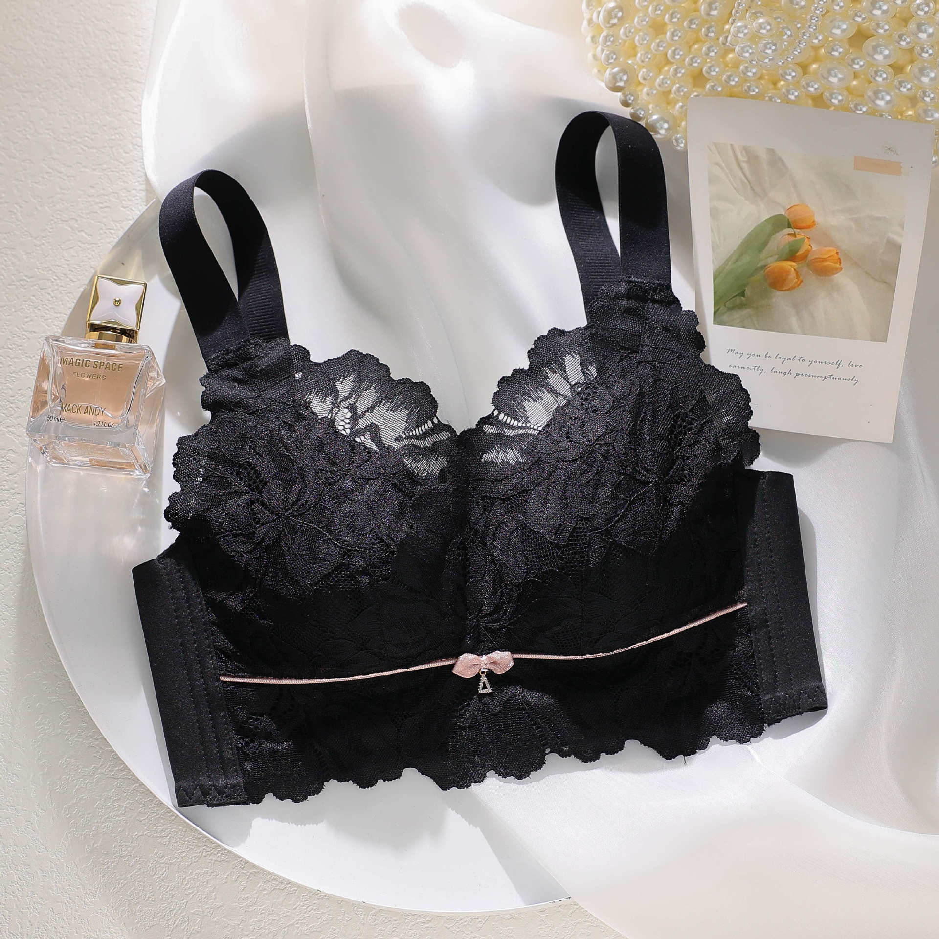快適通気性薄垂れ防止大胸見え小下着女性調整型収れん副乳レース文ブラ
