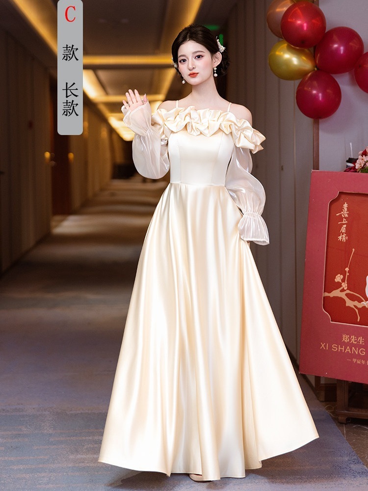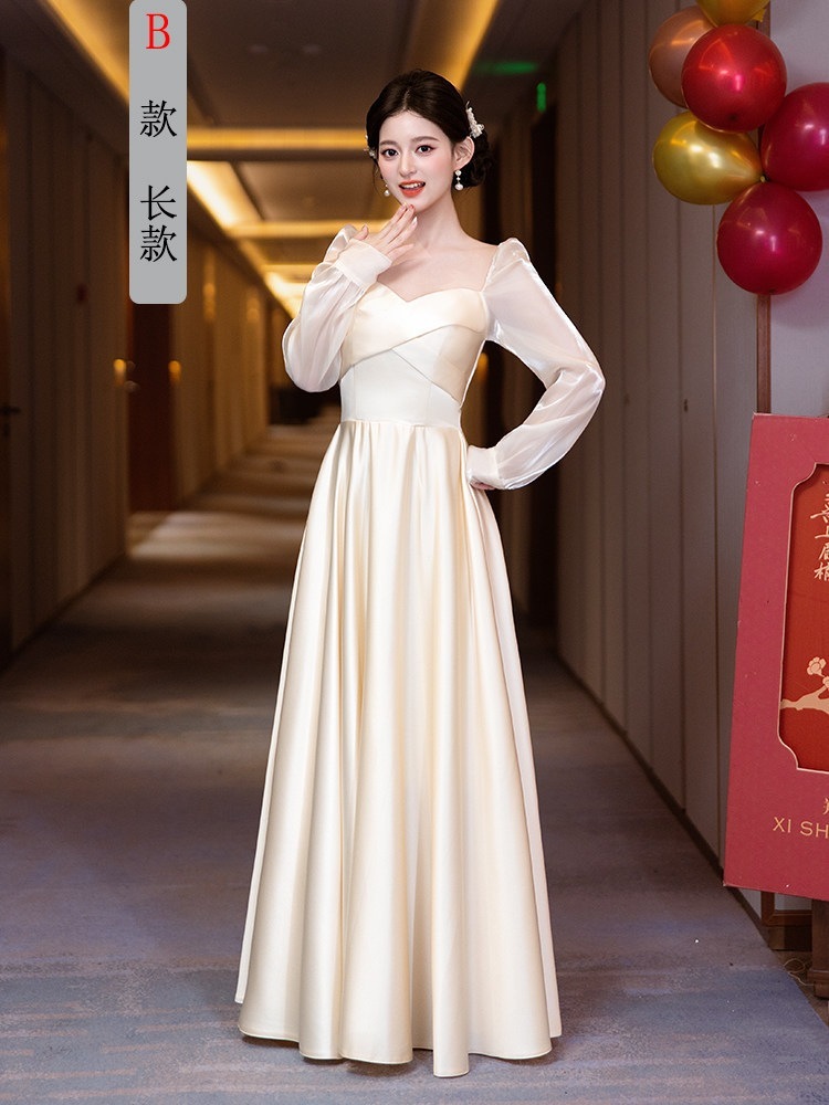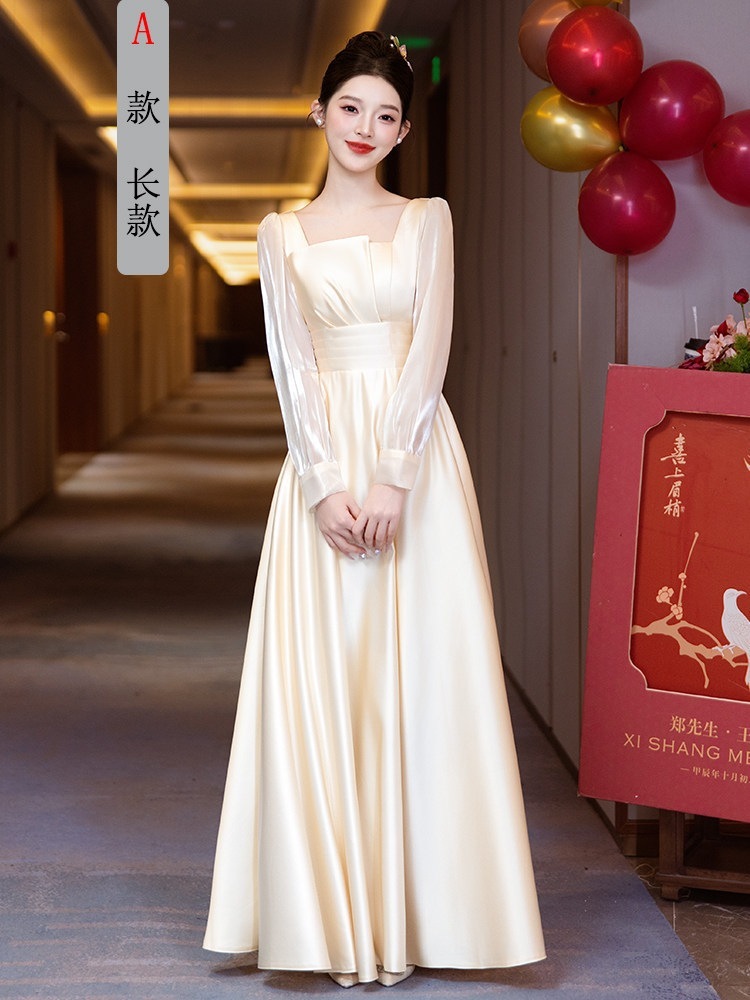 10個セット サテンのお供服2026冬服高級感お供団イブニングドレススカート女性長袖冬