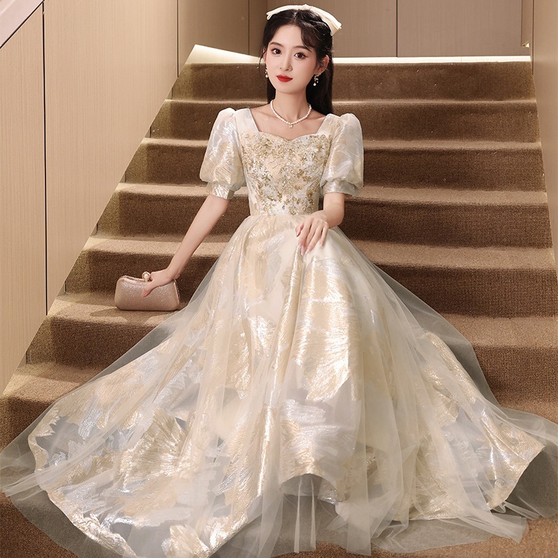 イブニングドレス女性高級感宴会気質宴会声楽芸考司会ワンピースシャンパンゴールド