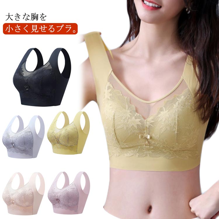 すっきり細見え!冷感 ブラジャー ブラ 胸を小さく見せるブラ ノンワイヤー 補正下着 小さくみせるブラ 着やせブラ 補正ブラ アイスシルク レースブラ 涼しい 快適 チラ見防止 M L XL 2XL