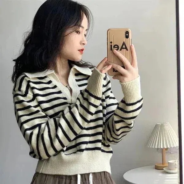 限定数量人気なリプニット 韓国ファッション Vネック コントラストカラー ニットカーディガン ニッチデザイン プルオーバーデザイン セーター ショート アンダーウェア トップス カシミヤタッチ