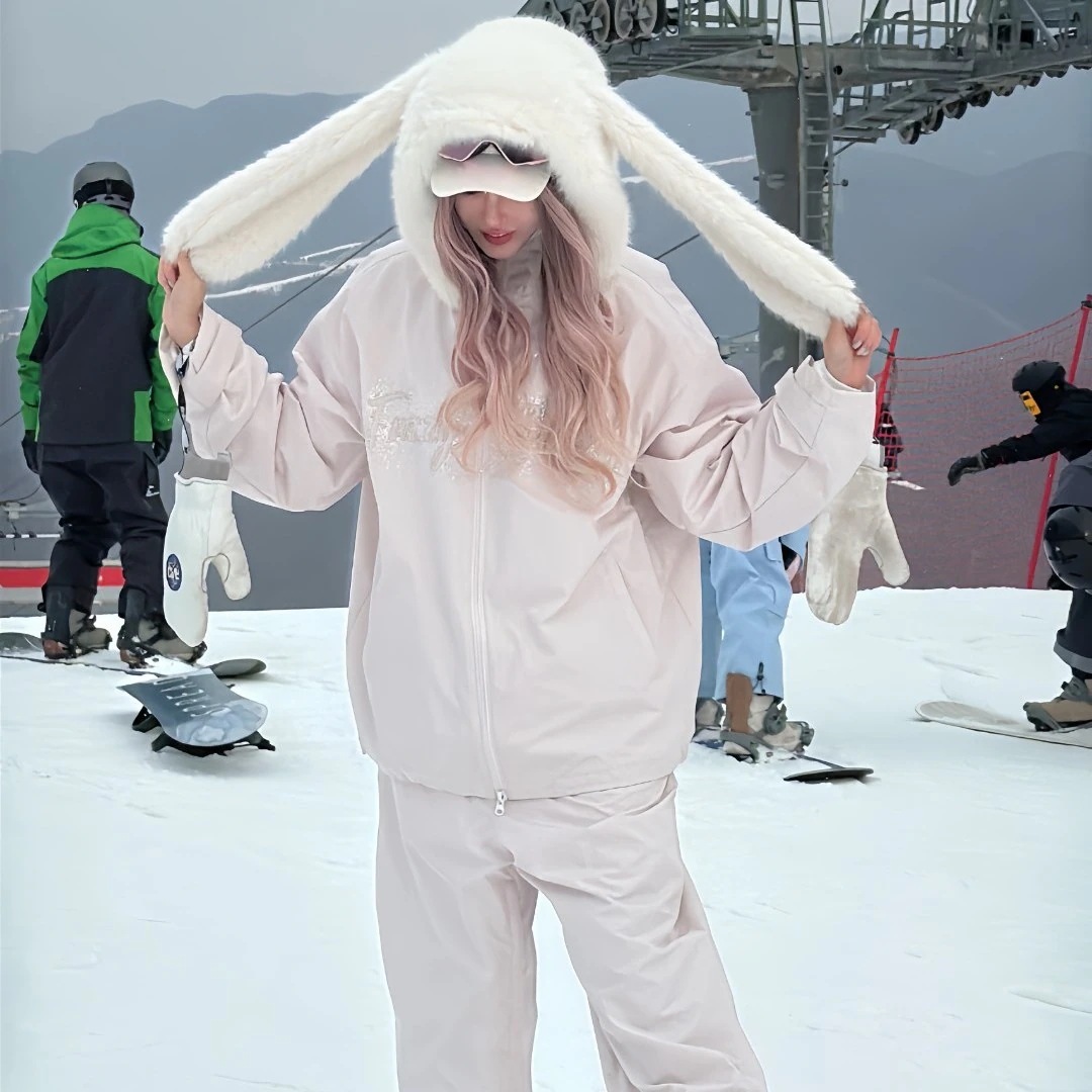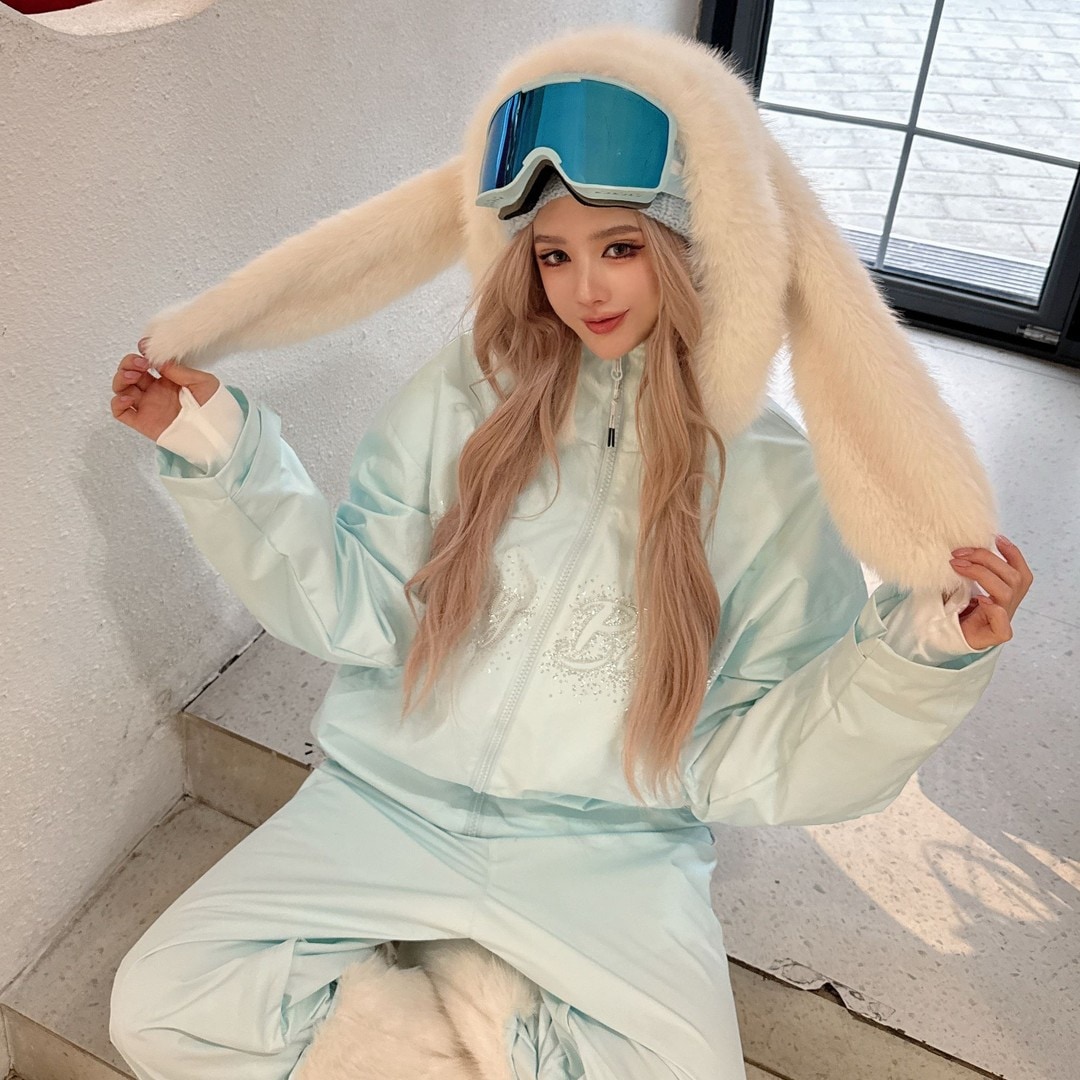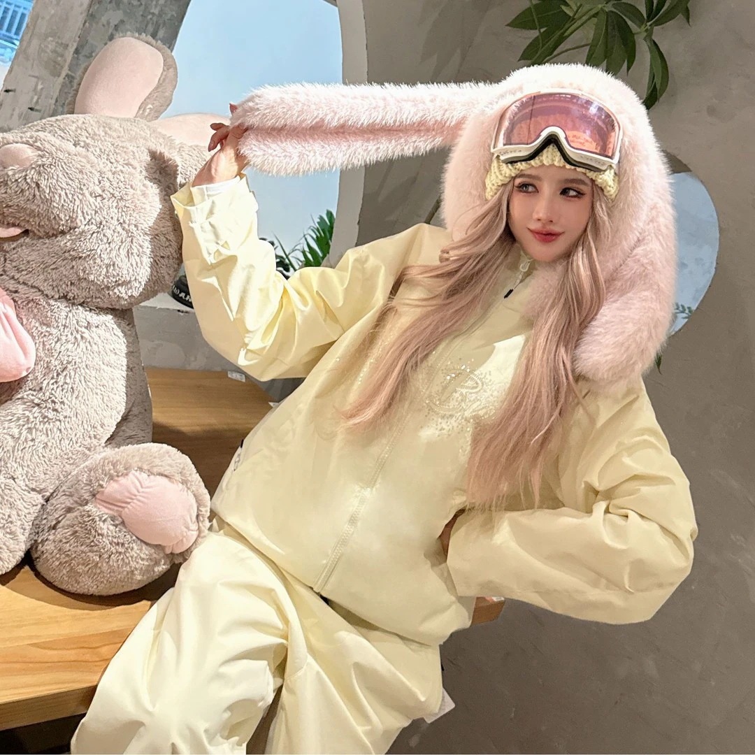 スノーボードウェア 2026 ピンク ブルー イエロー 上下セット かわいい ウサギの耳 ドリルデザイン レディース 防水20000mm スキーウェア スノボウェア ジャケット アウター ロングパンツ