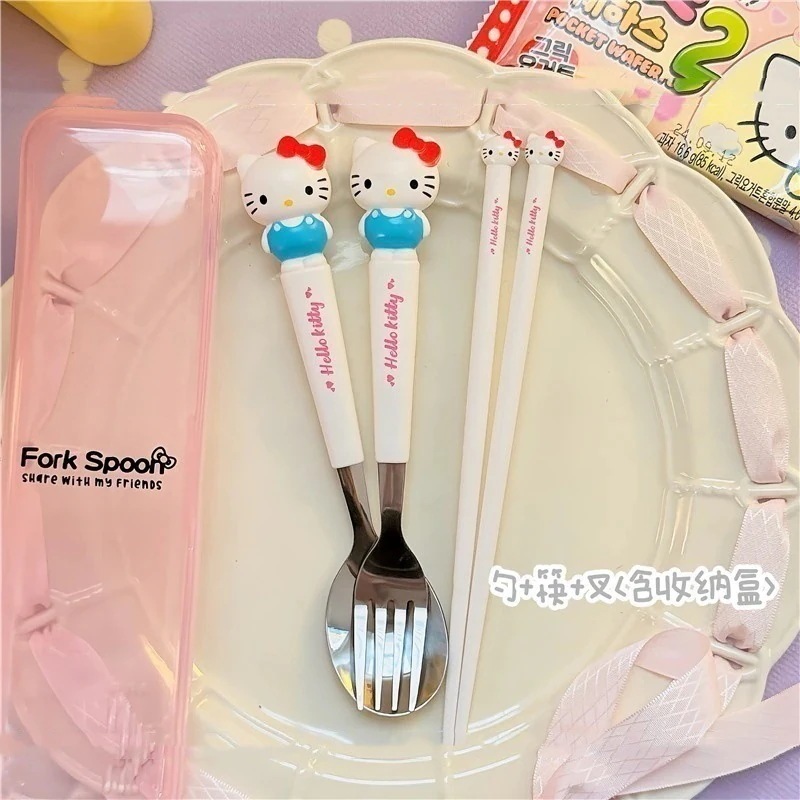 サンリオHL-015トリオ携帯食器セットステンレススプーンフォーク箸滑り止め箸a-50
