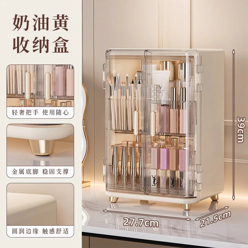 収納ボックス 収納ボックスデスク用防塵化粧品スタンド 化粧台両開き収納 大容量化粧キャビネット