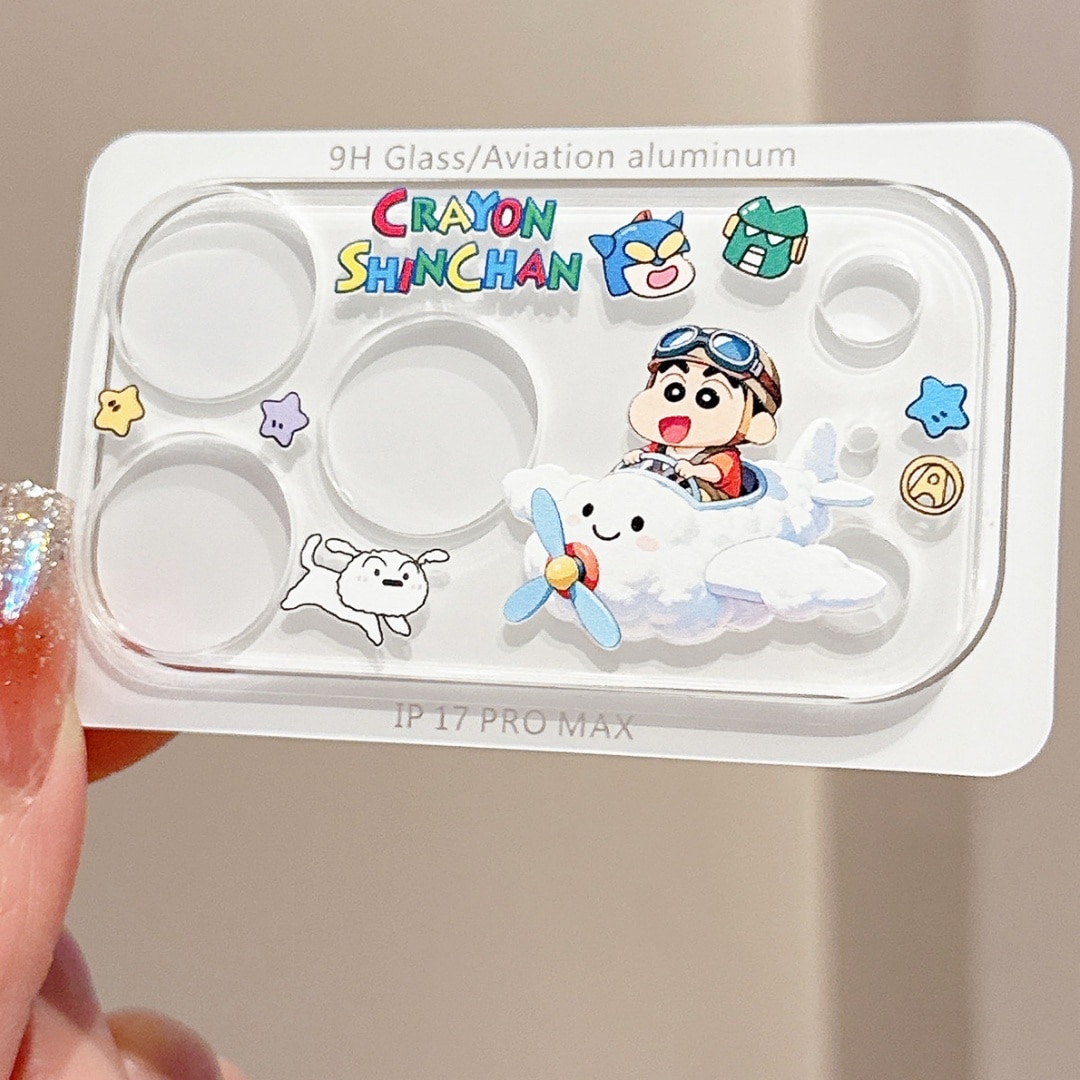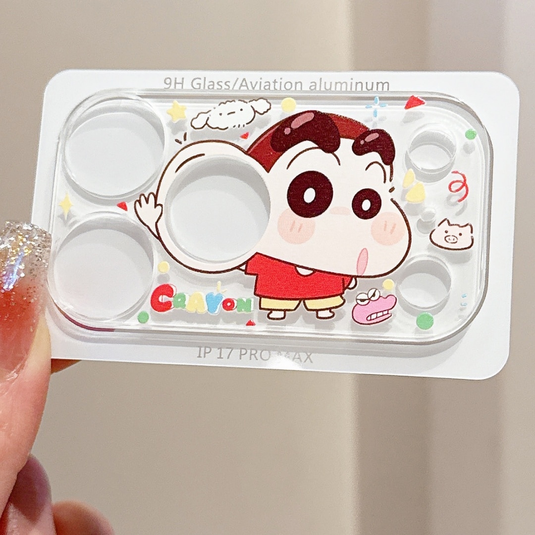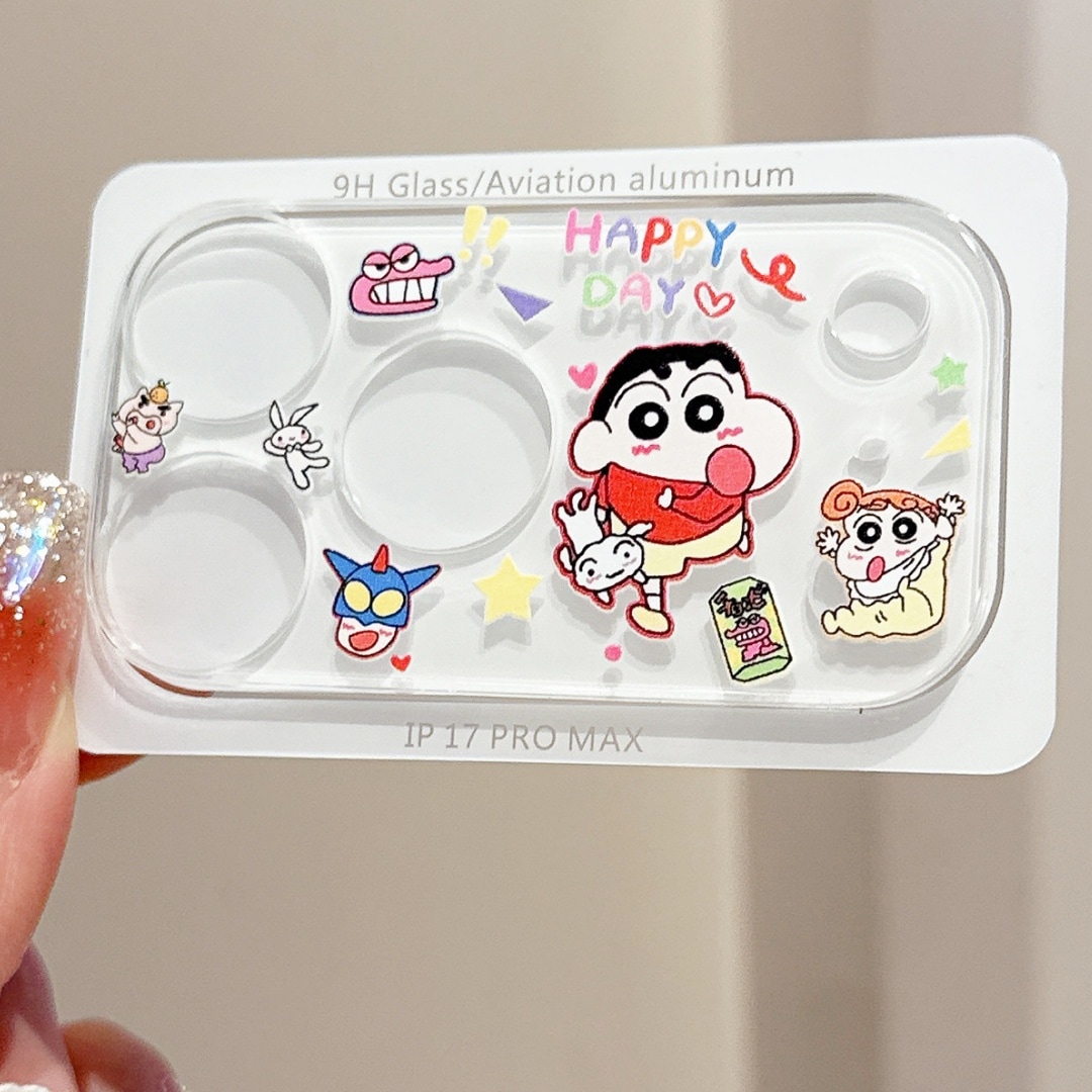 iPhone17Proカメラレンズ 保護フィルム iphone17Pro iphone17Promax 漫画カメラレンズカバー 9H 強化ガラス 透明 超かわい クレヨンしんちゃん キティ