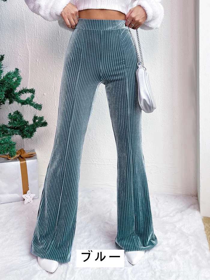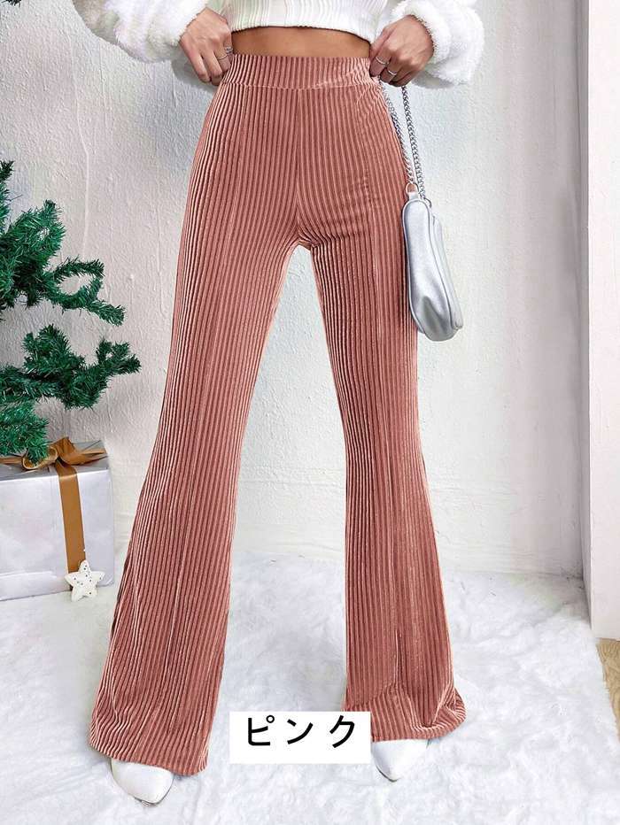 [2026設計新規出荷が早い]コーデュロイ フレアパンツ レディース ボトム リブフレアパンツ ワイドパンツ ロングパンツ ズボン ウエストゴム 体型カバとても良い