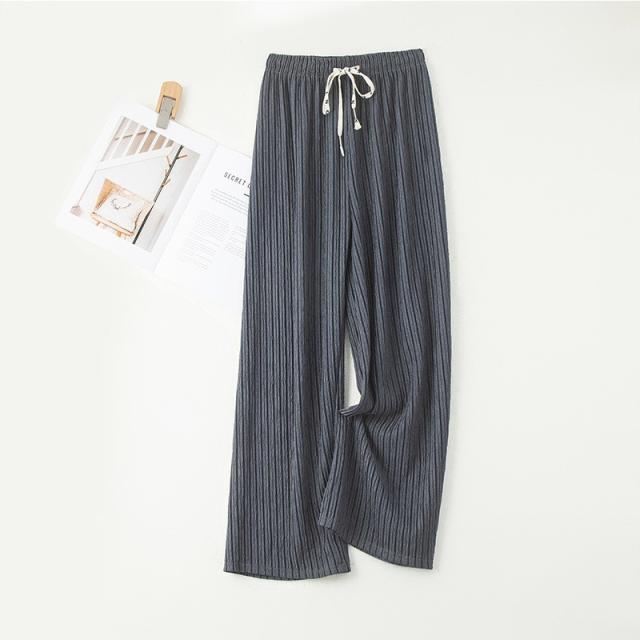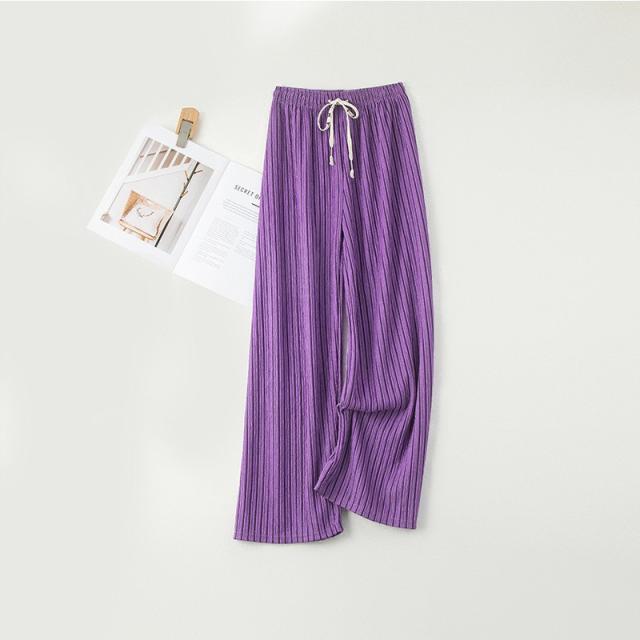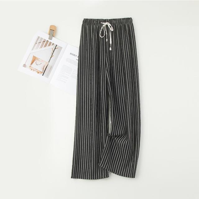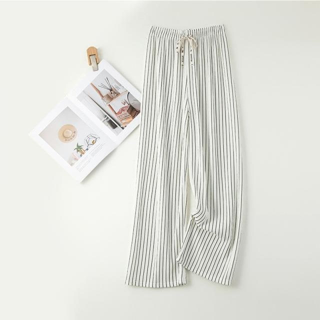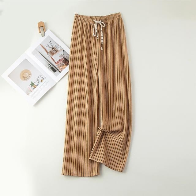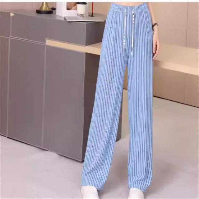 ワイドパンツ 新作 さらてろ ボーダー柄 パンツ レディース リラックス ワイド ウエストゴム カジュアル 体型カバー エンボス