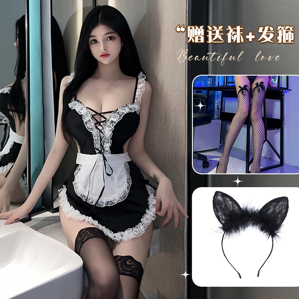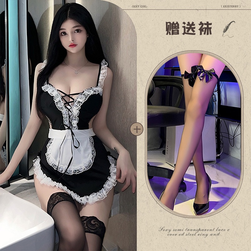 ランジェリーセクシーストラップレース誘惑メイド服紐付きいたずらメイド役制服