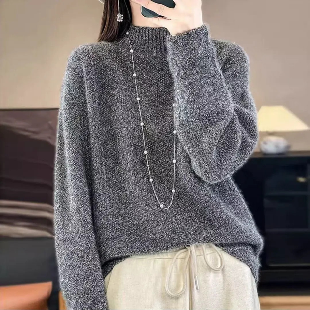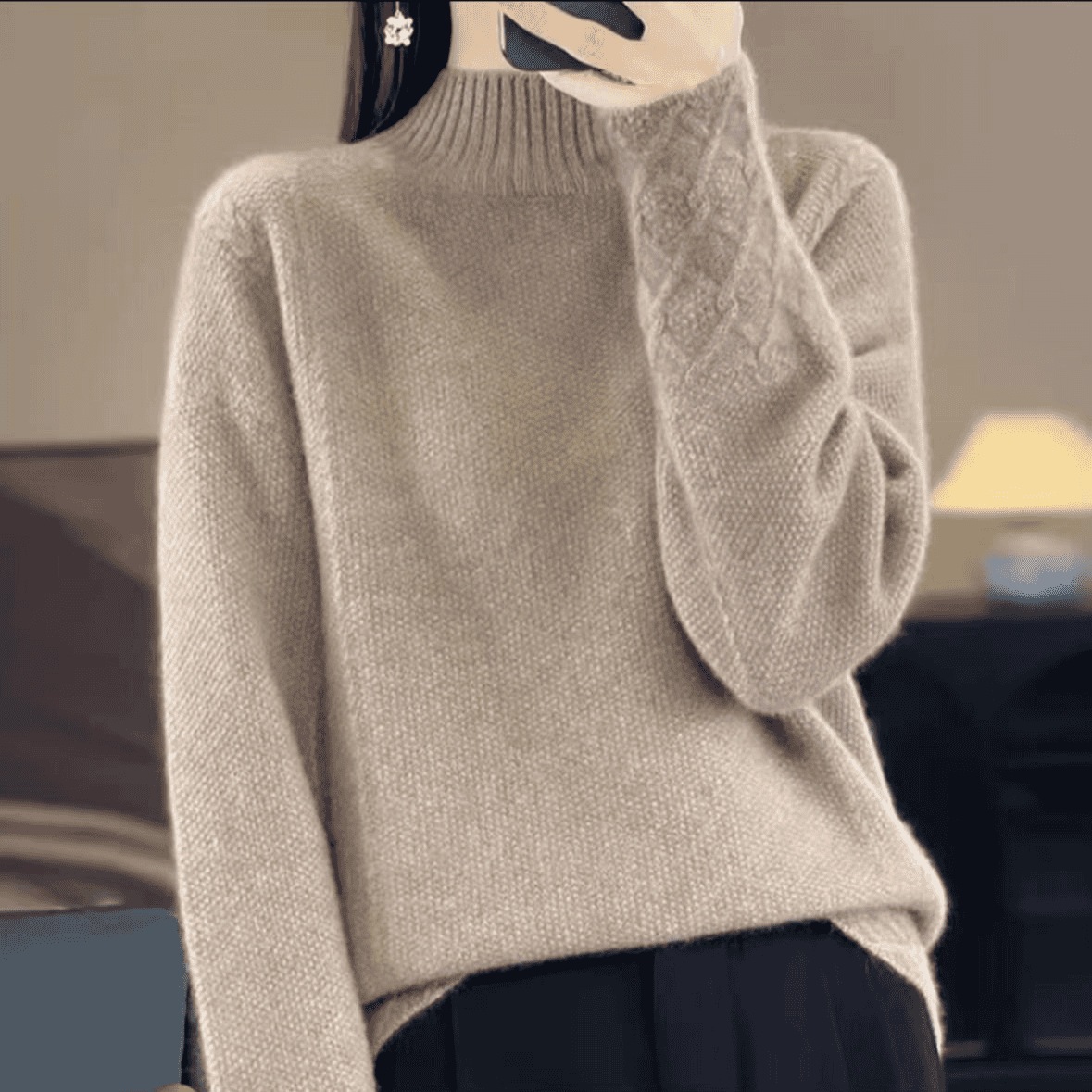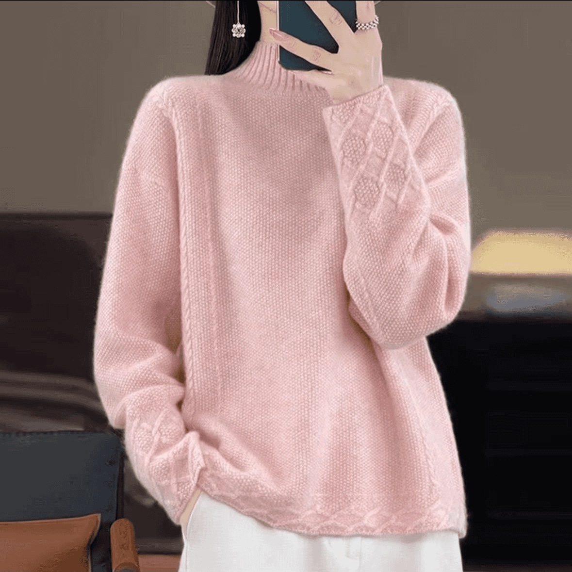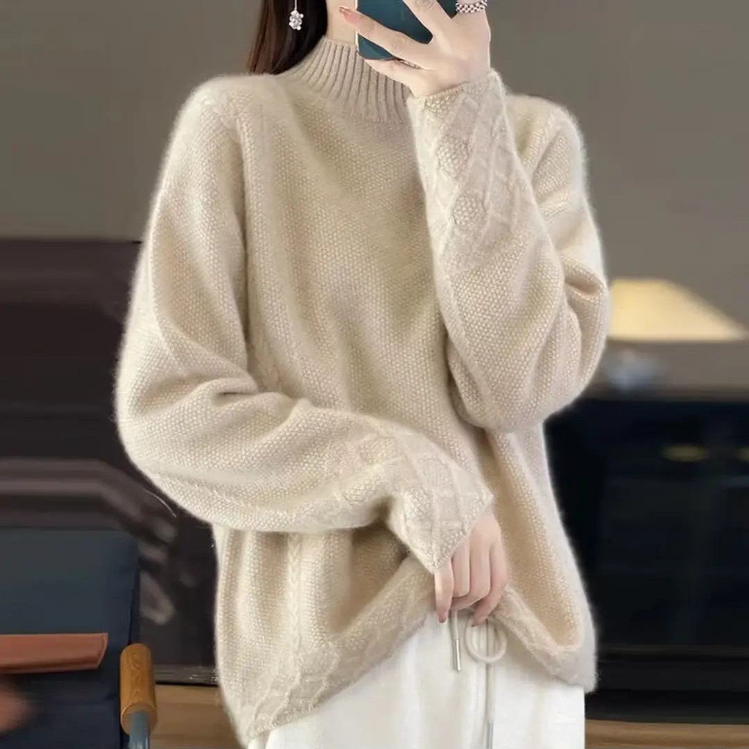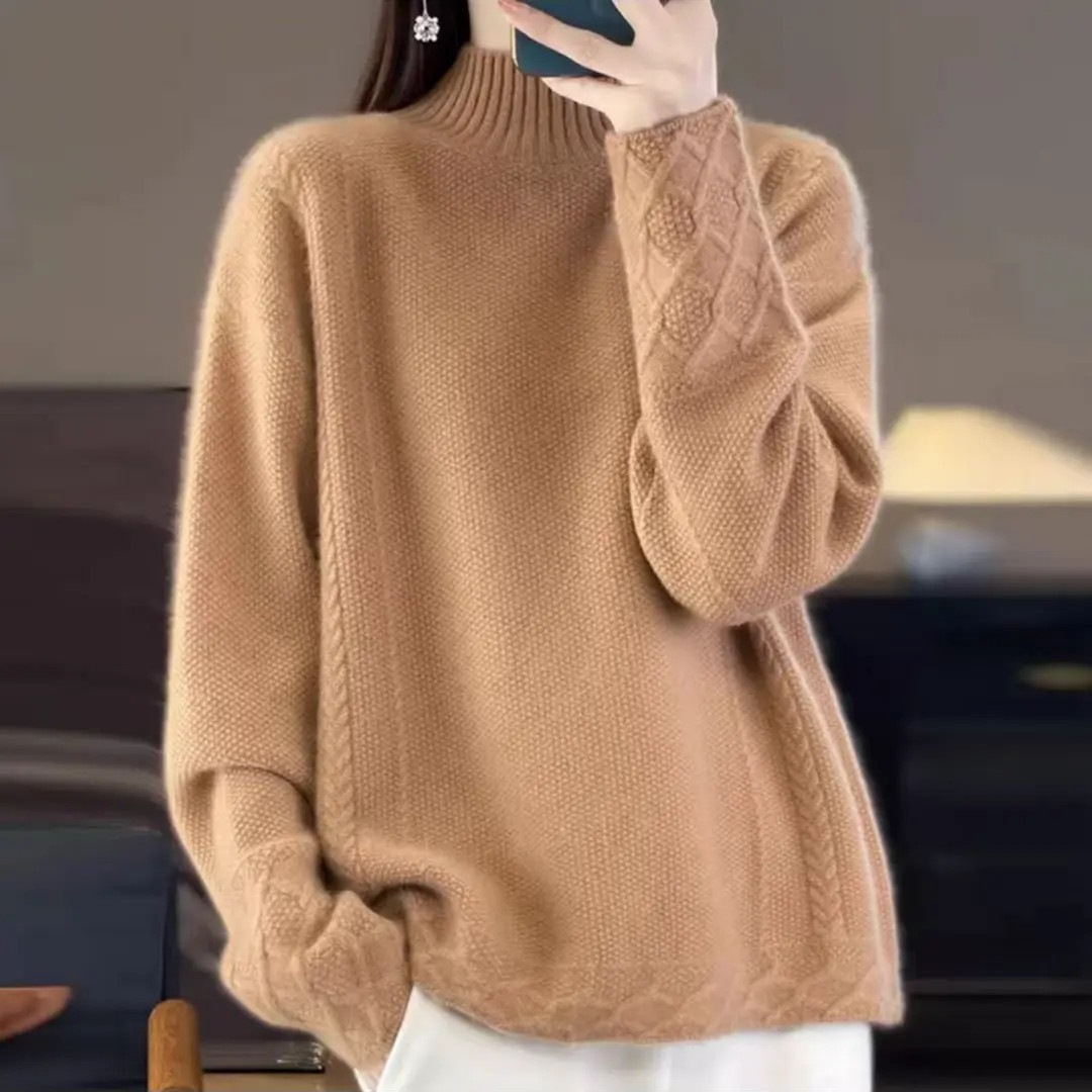 【2枚購入で 2oo円OFF!】レディース 秋冬 スタンドカラー ジャカード編み ニットトップス ゆったりシルエット シンプル デイリー 厚手 インナー リラックス プレゼント