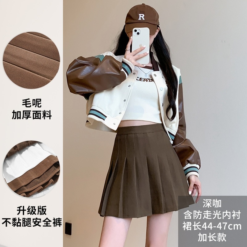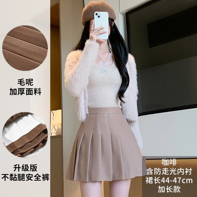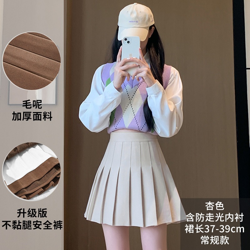 【急速出荷】プリーツスカート秋冬の新作厚毛ツイードスカートハイウエスト韓国版a字スレンダースリムサイズ半身スカート