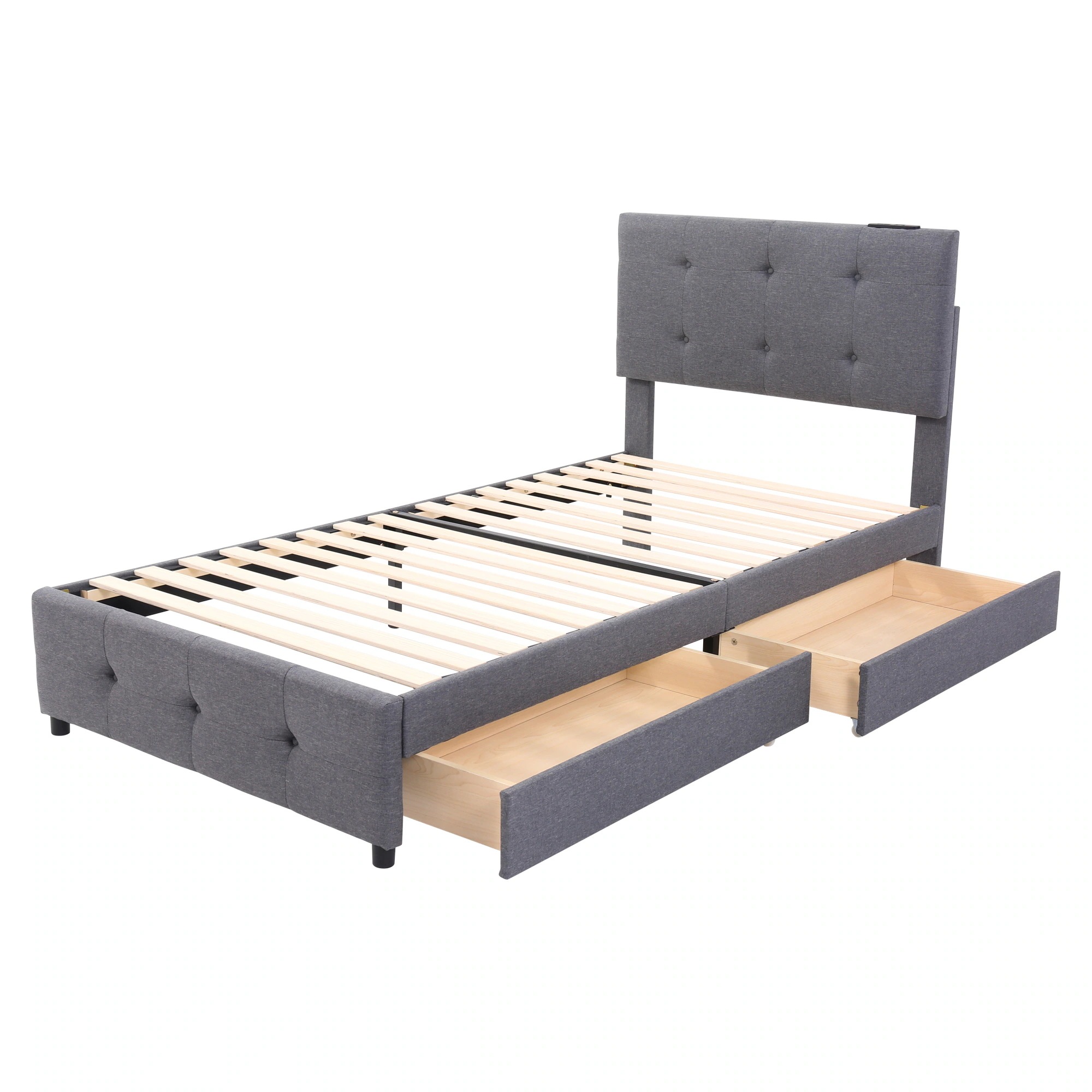 [国内即発送]S ファブリックベッド ベッドフレームのみ 引き出し付き シングルベッド 布貼りベッド 木製 アイアン 大人用 組立簡単 下収納 すのこベッド 北欧風 おしゃれ マットレスは別売り【Sシ