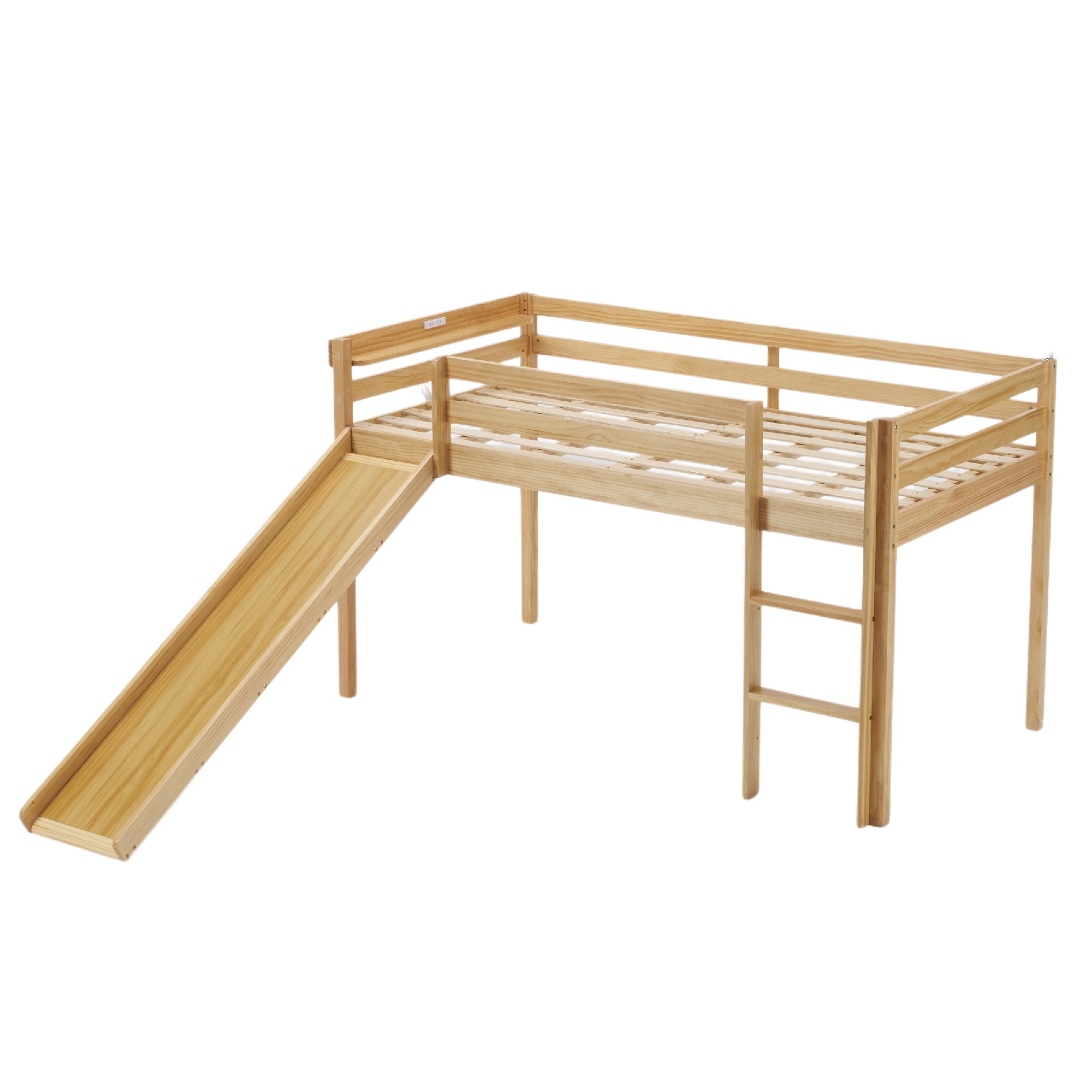 [国内即発送]ロフトベッド 頑丈 ロータイプ 階段付き 天然木 コンセント付き シングル 宮付き 滑り台付き収納棚付き 収納 北欧風 大人 一人暮らし ベッド 木製ロ【ナチユラル】