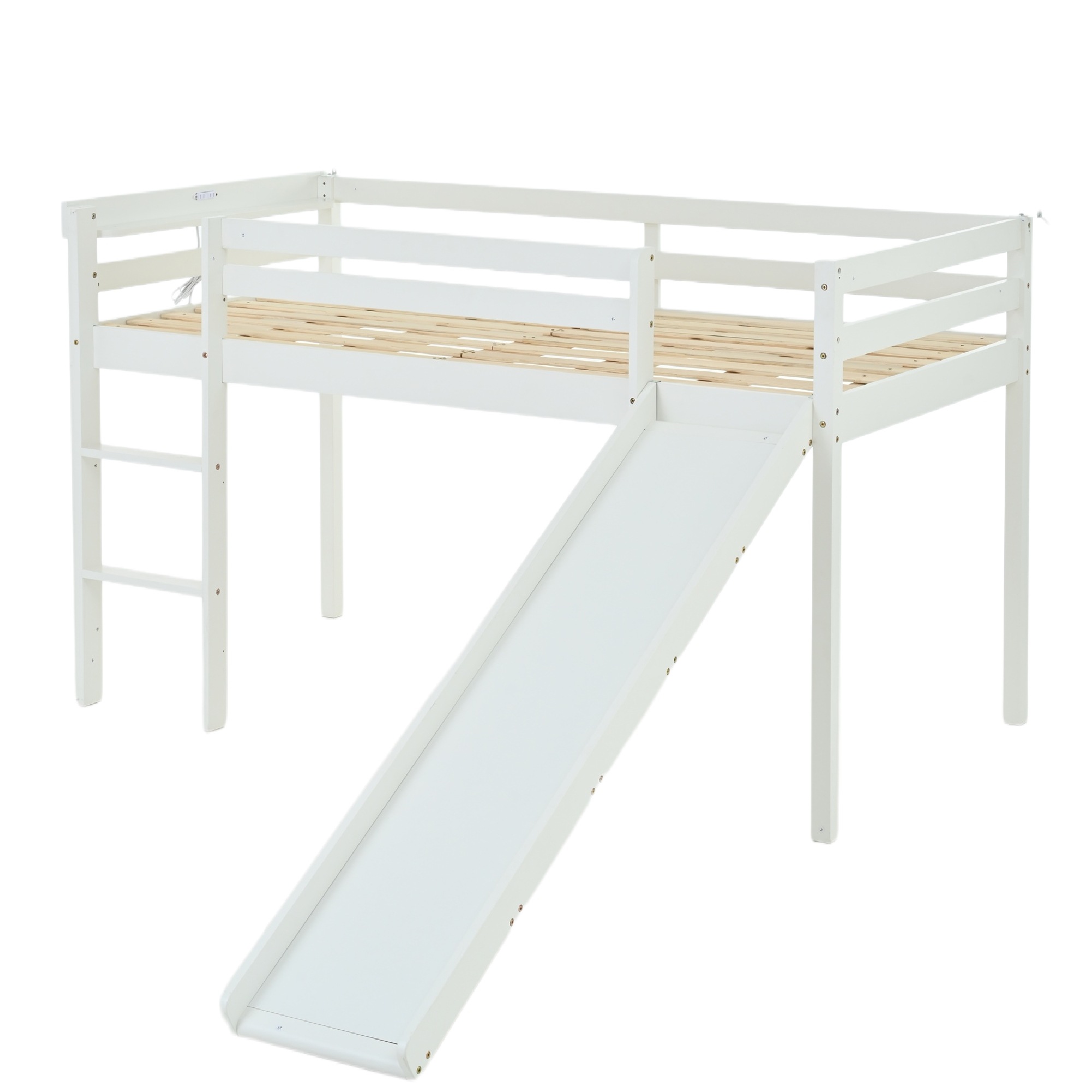 [国内即発送]ロフトベッド 頑丈 ロータイプ 階段付き 天然木 コンセント付き シングル 宮付き 滑り台付き収納棚付き 収納 北欧風 大人 一人暮らし ベッド 木製ロフ【ホワイト】