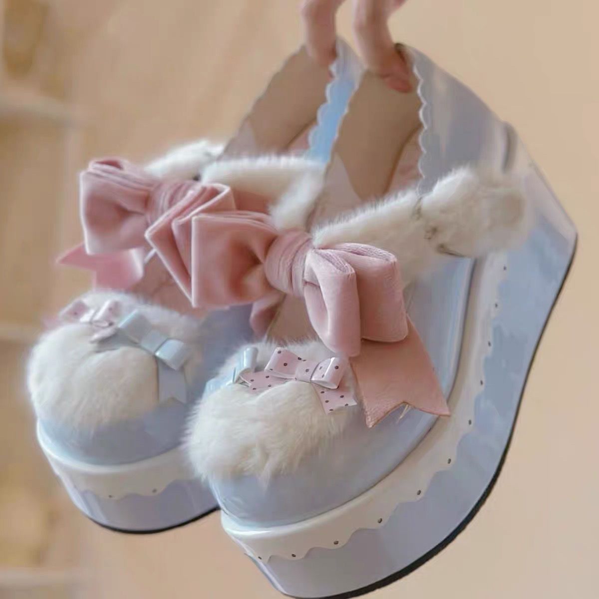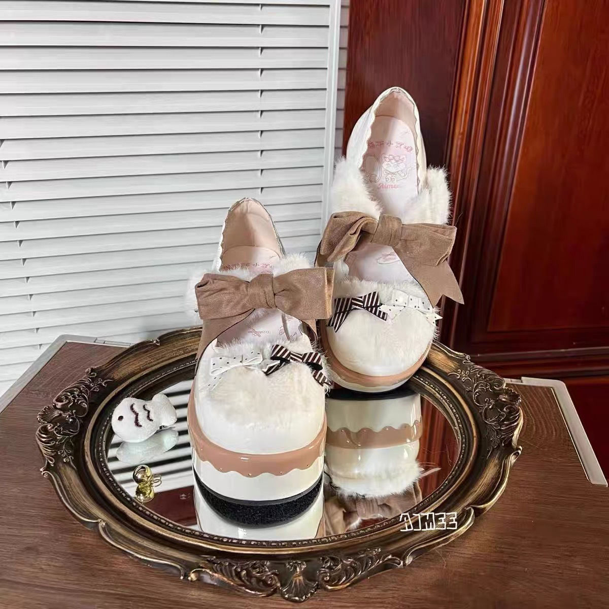 ロリータシューズ 厚底サンダル 秋冬ロリータブーツ中敷ロリータ綿靴JK制服靴婦人靴