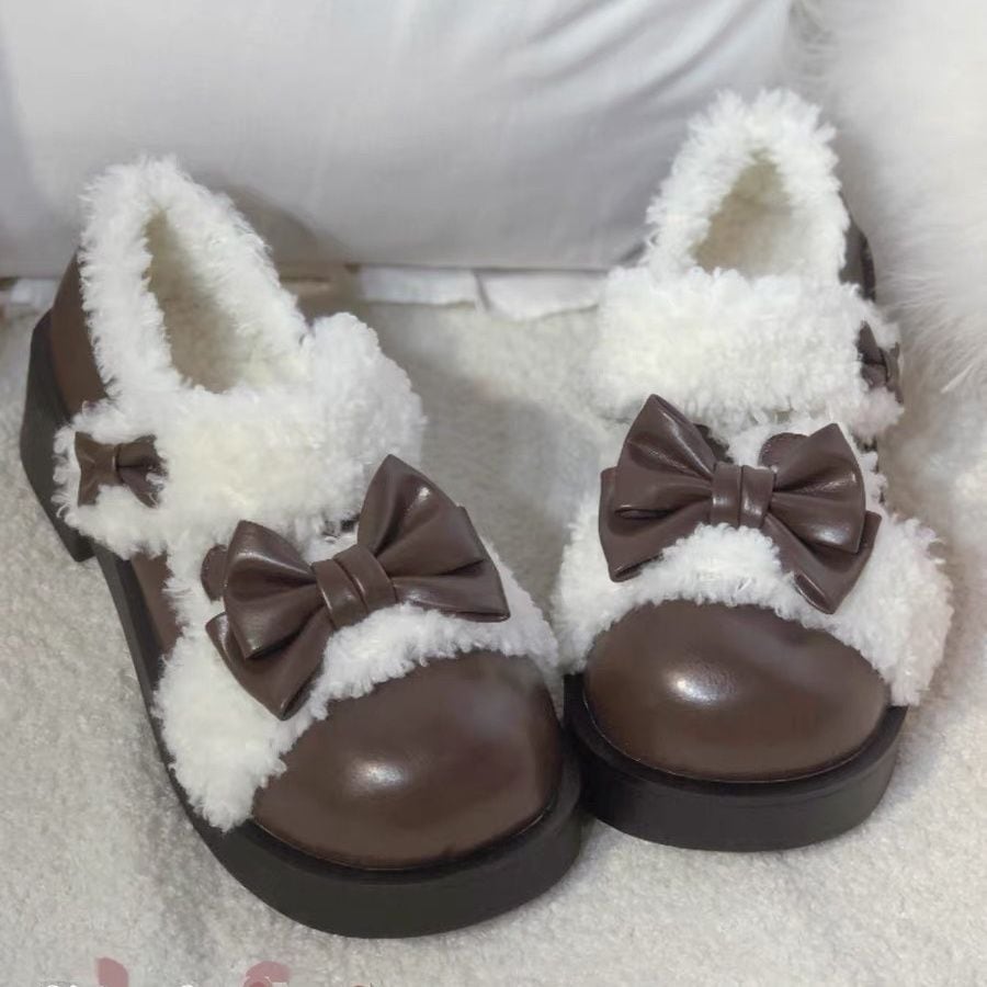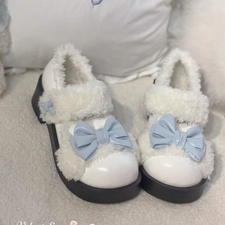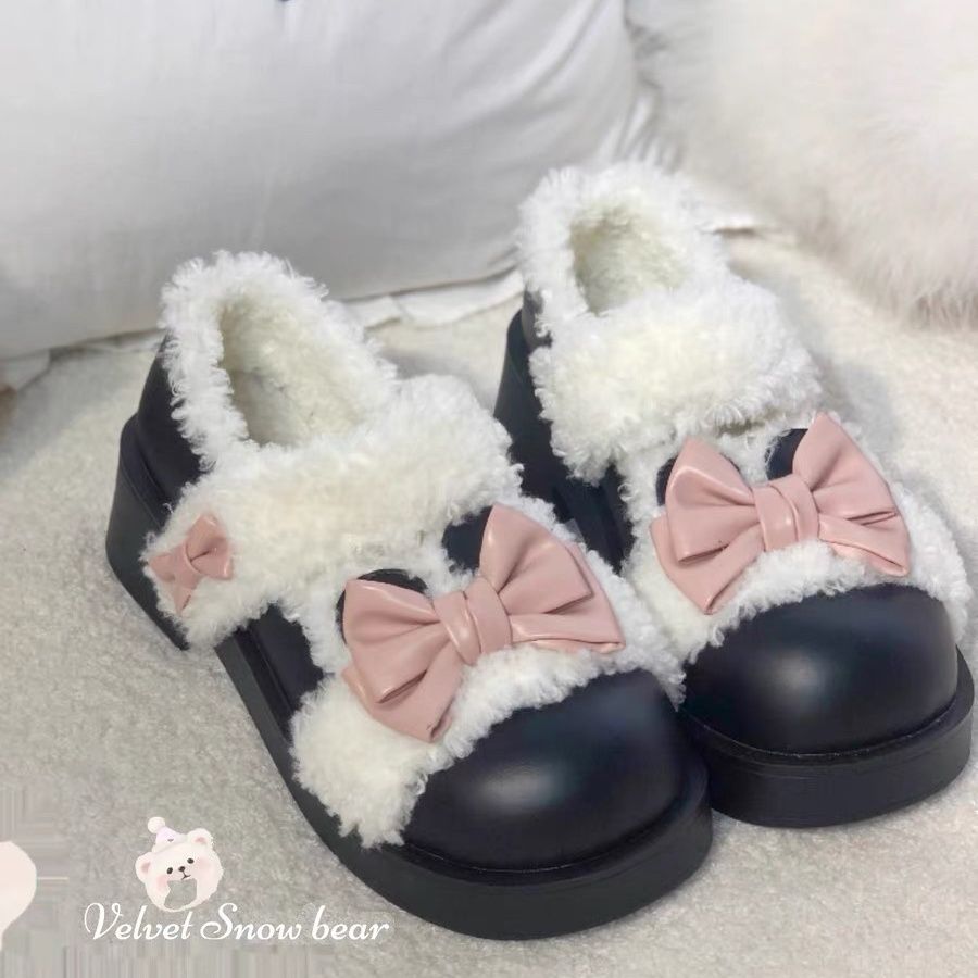 ロリータシューズ 日本製中敷きリボン冬の新しい綿の靴厚底ロリータ暖かいかわいいロリータ靴
