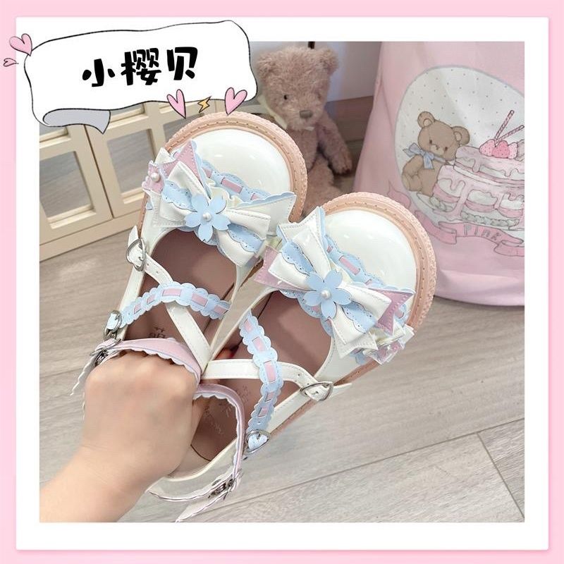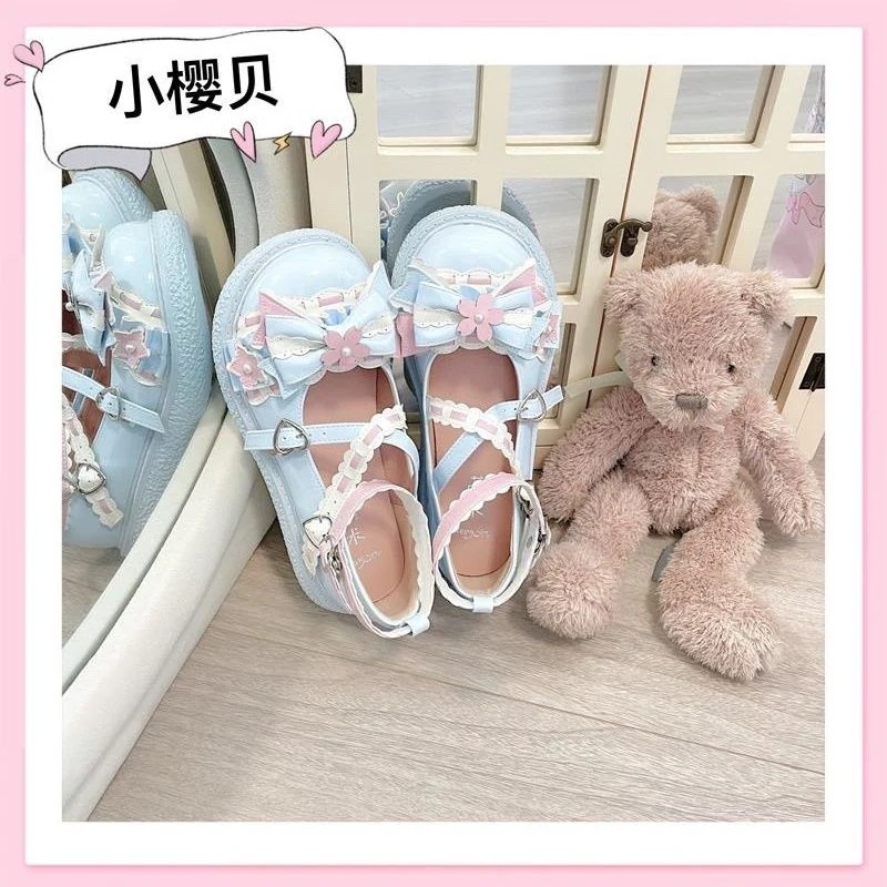 ロリータシューズ 日本の柔らかい女の子ロリータ丸い頭の弓甘いかわいいソフト甘い学生JK制服シングル靴女性の靴