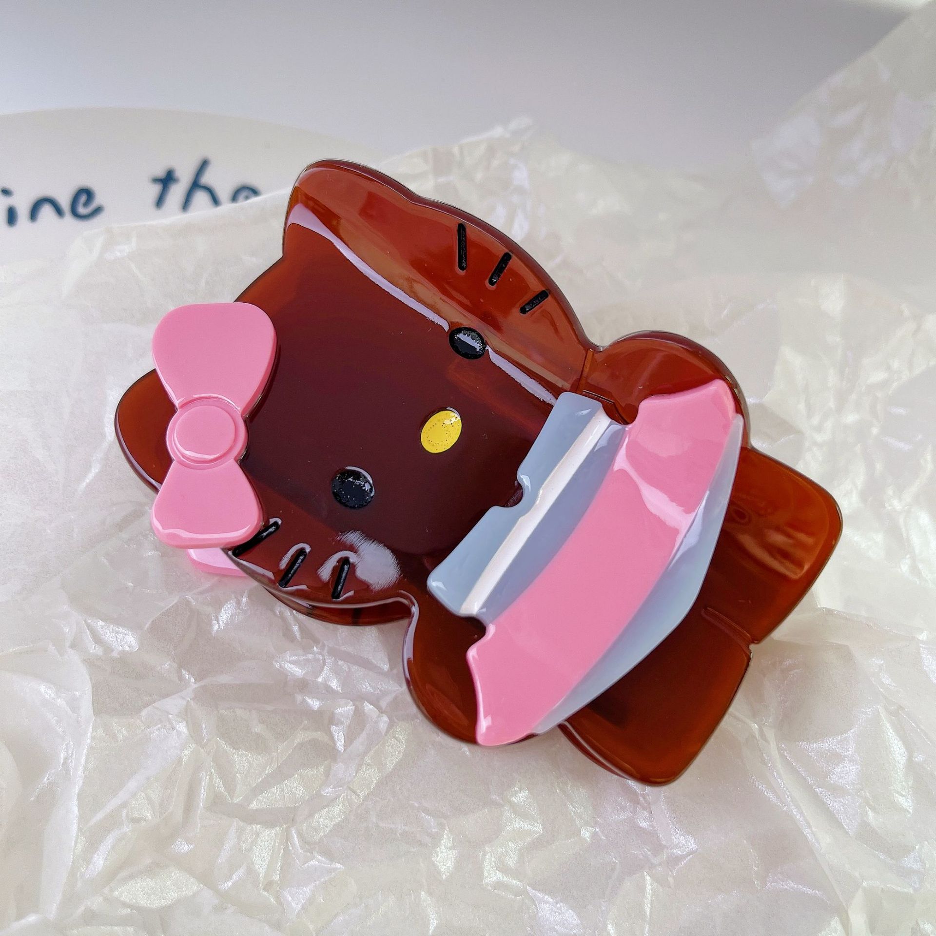 大好評!新作!ハローキティグリップ可愛いハワイアンキティヘアピン黒革サメクリップ高級感のあるキャラクター髪飾り 日焼けキティ